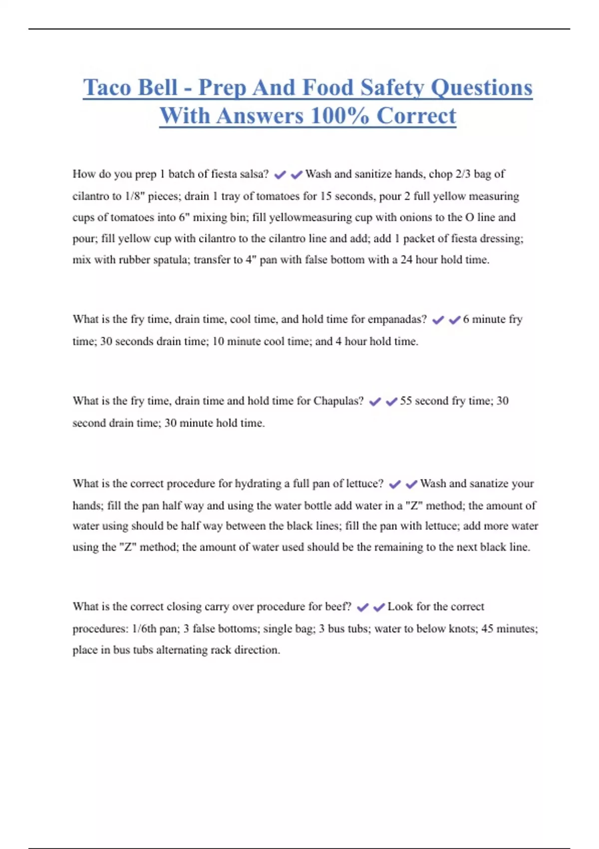 How do you prep 1 batch of fiesta salsa? Wash and sanitize hands, chop 2/3 bag of
