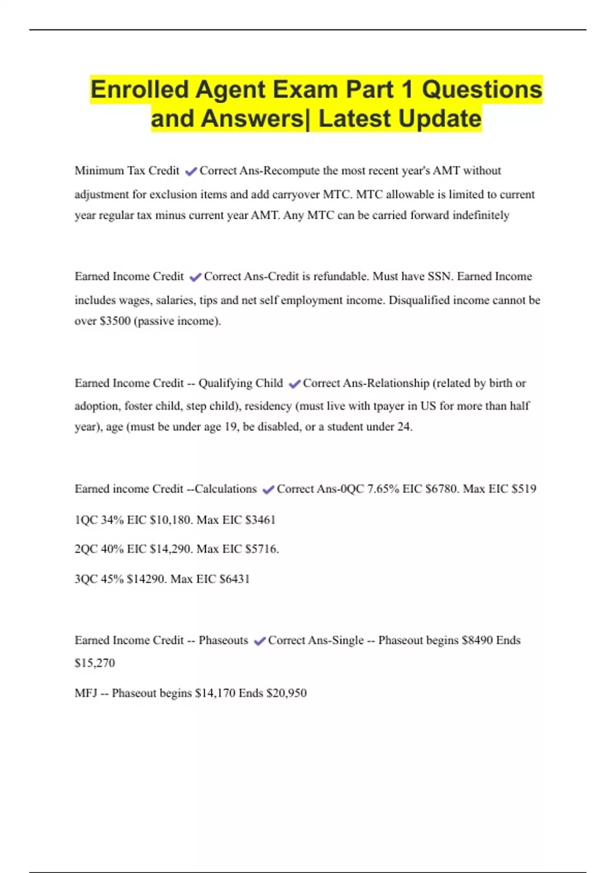 Enrolled Agent Exam Part 1 Questions and Answers| Latest Update