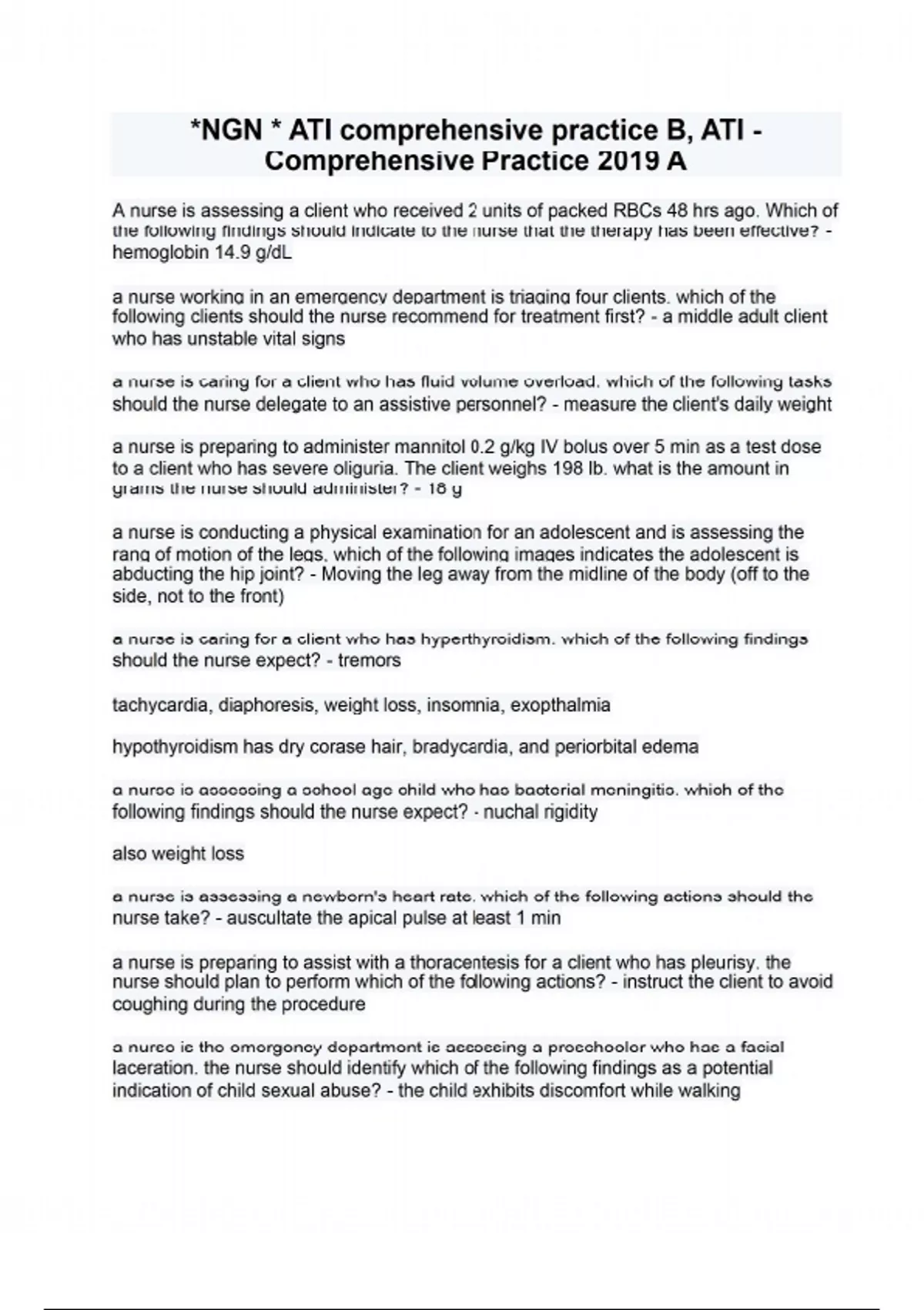*NGN * ATI comprehensive practice B, ATI - Comprehensive Practice 2019 A