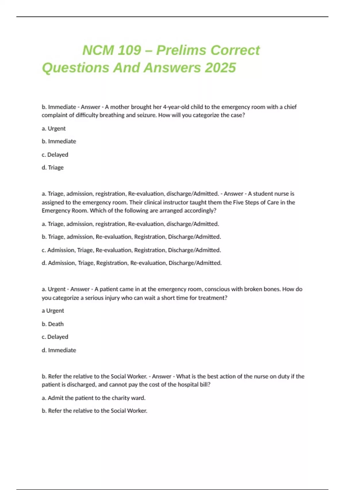 NCM 109 – Prelims Correct Questions And Answers 2025