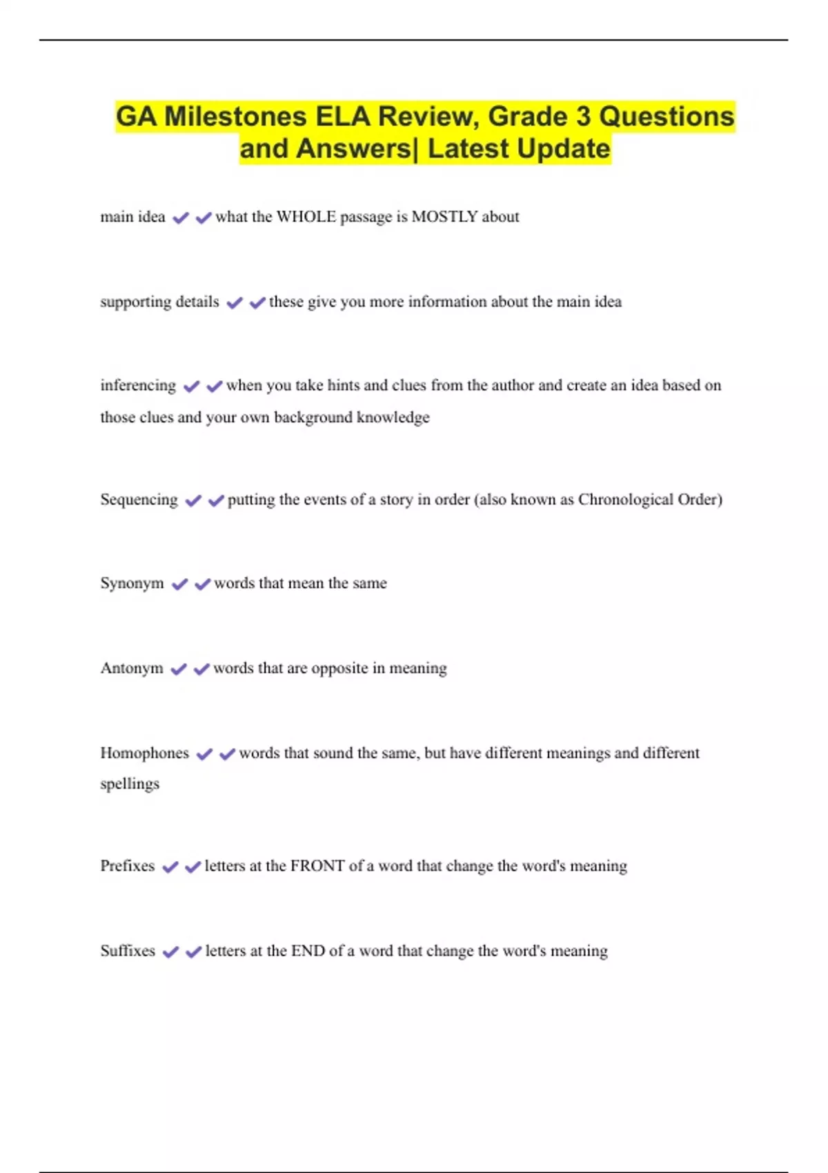 GA Milestones ELA Review, Grade 3 Questions and Answers| Latest Update