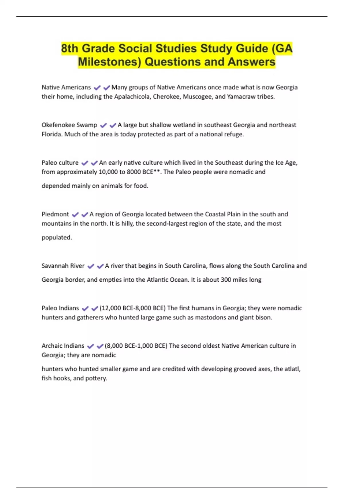 8th Grade Social Studies Study Guide (GA