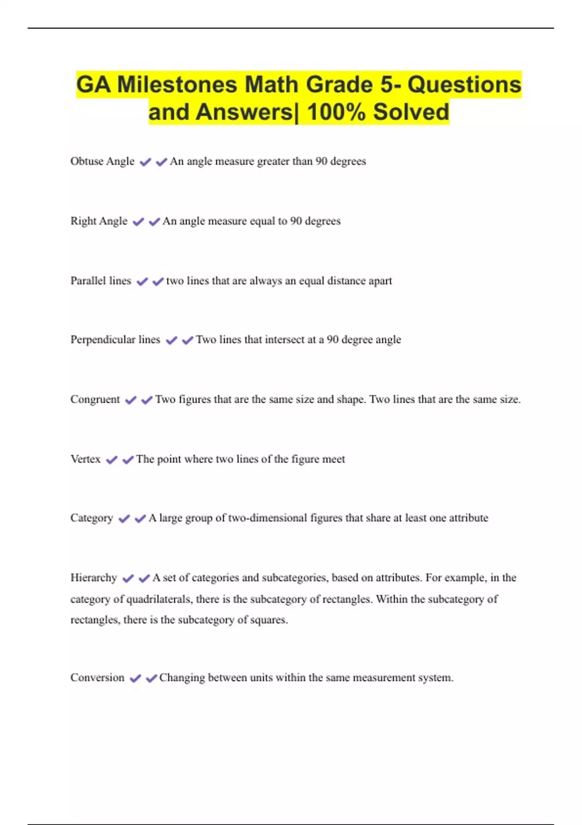 GA Milestones Math Grade 5- Questions and Answers| 100% Solved