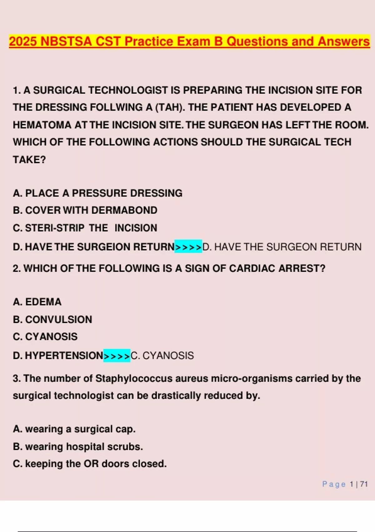 2025 NBSTSA CST Practice Exam B Questions and Answers