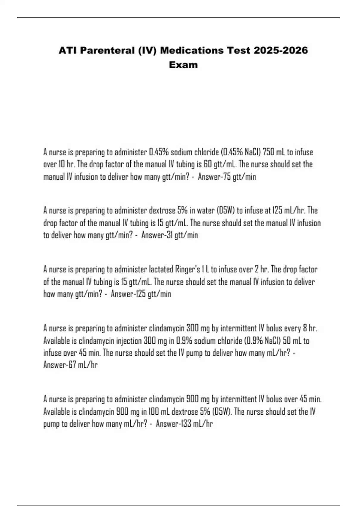 ATI Parenteral (IV) Medications Test Exam