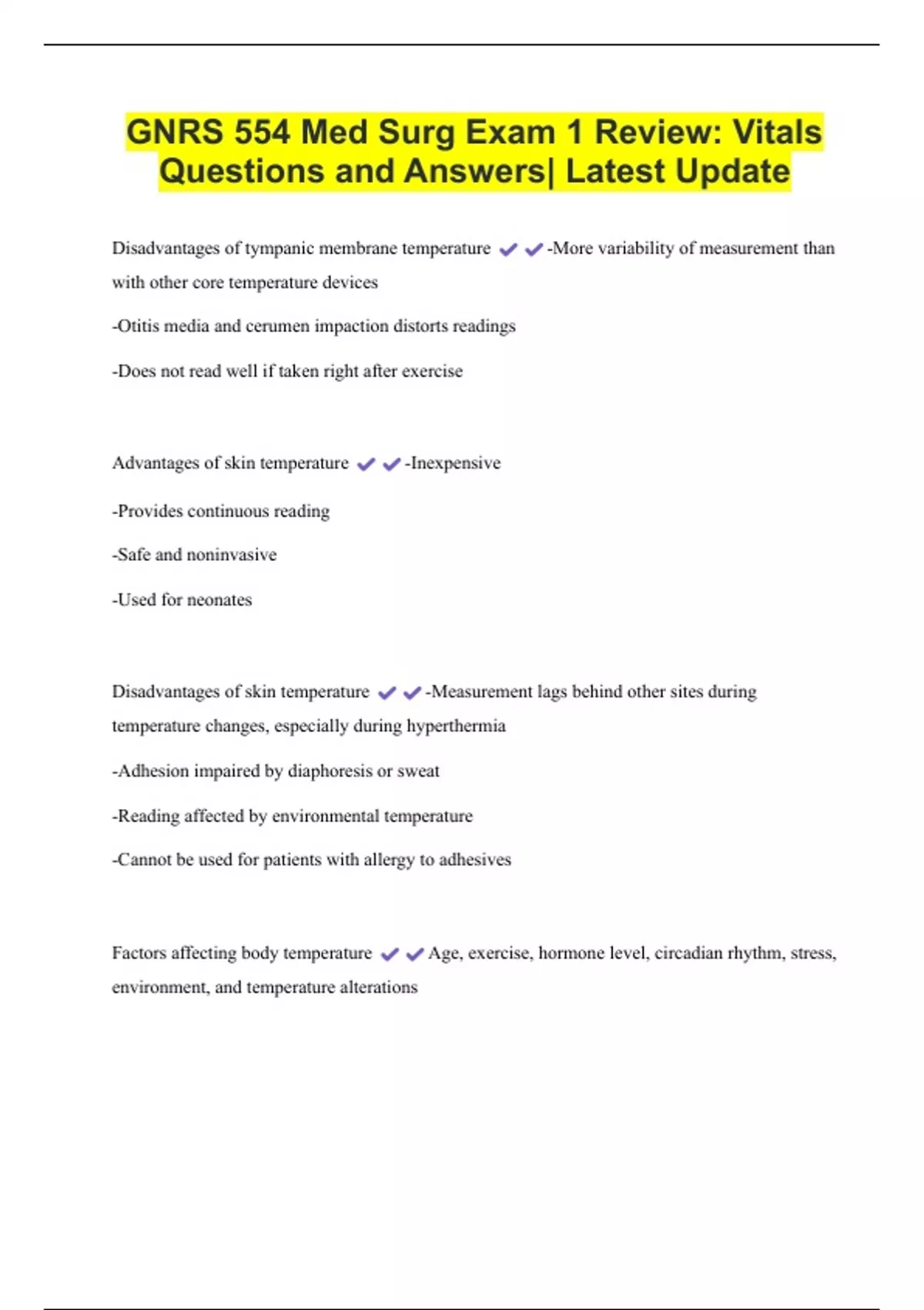 GNRS 554 Med Surg Exam 1 Review: Vitals Questions and Answers| Latest Update