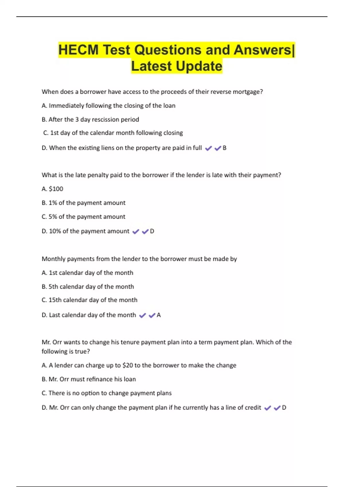HECM Test Questions and Answers|