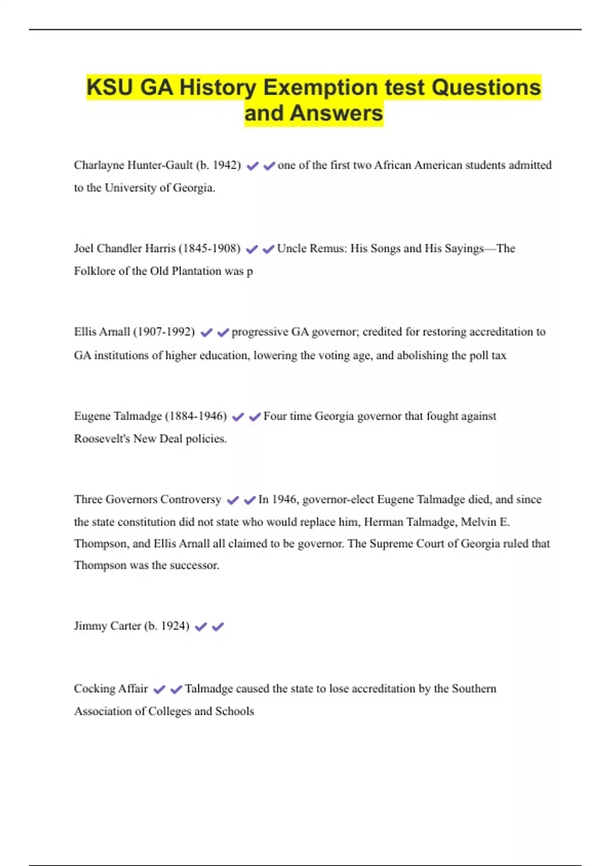 Ellis Arnall (1907-1992) progressive GA governor; credited for restoring accreditation to