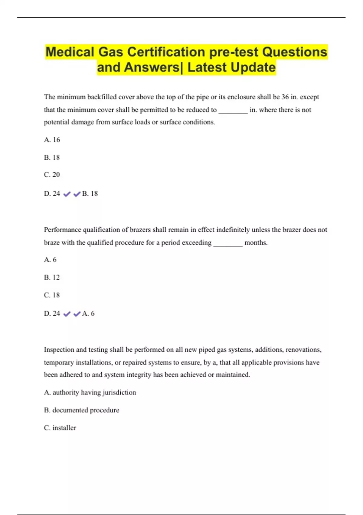 Medical Gas Certification pre-test Questions and Answers| Latest Update