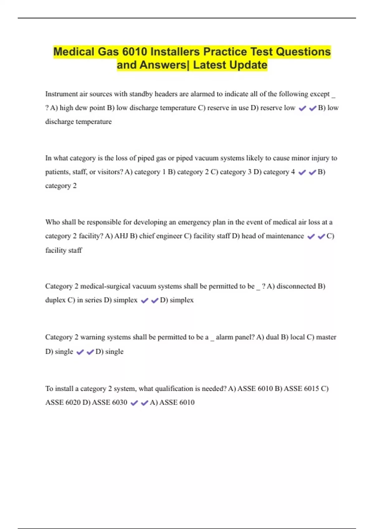 To install a category 2 system, what qualification is needed? A) ASSE 6010 B) ASSE 6015 C)