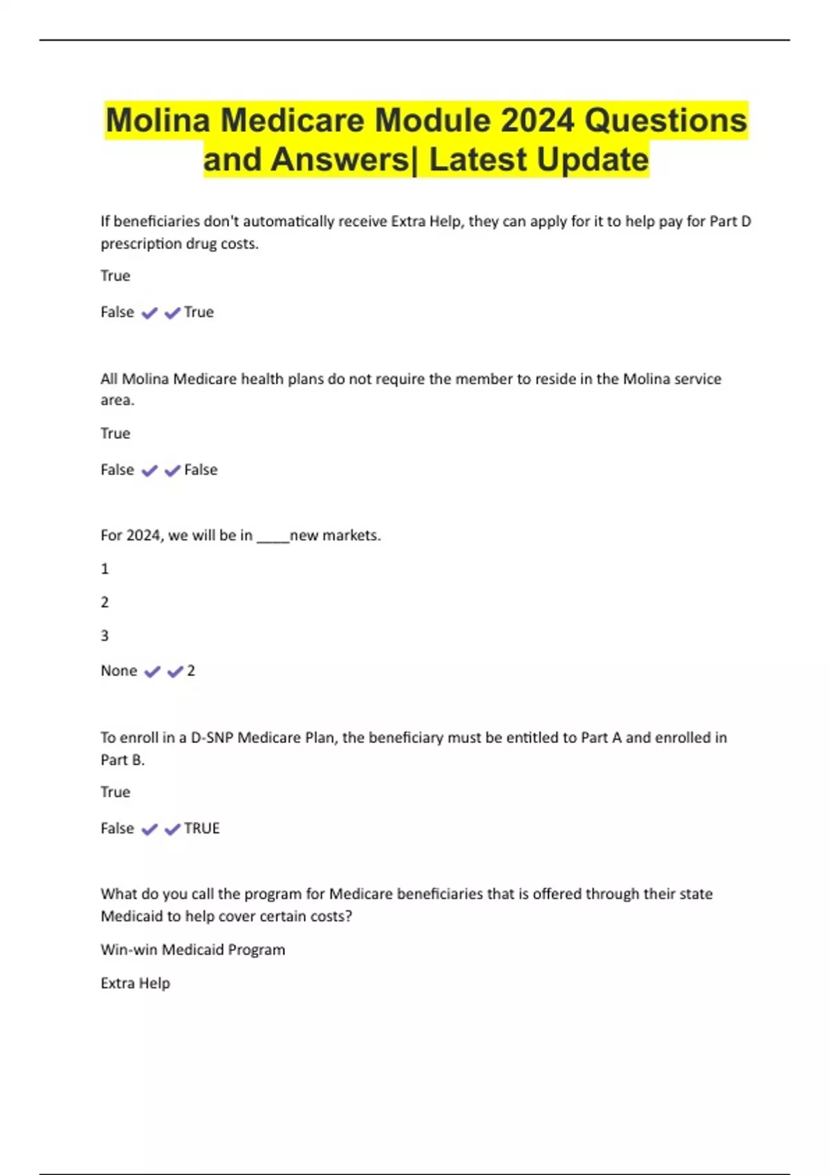 Molina Medicare Module 2024 Questions and Answers| Latest Update