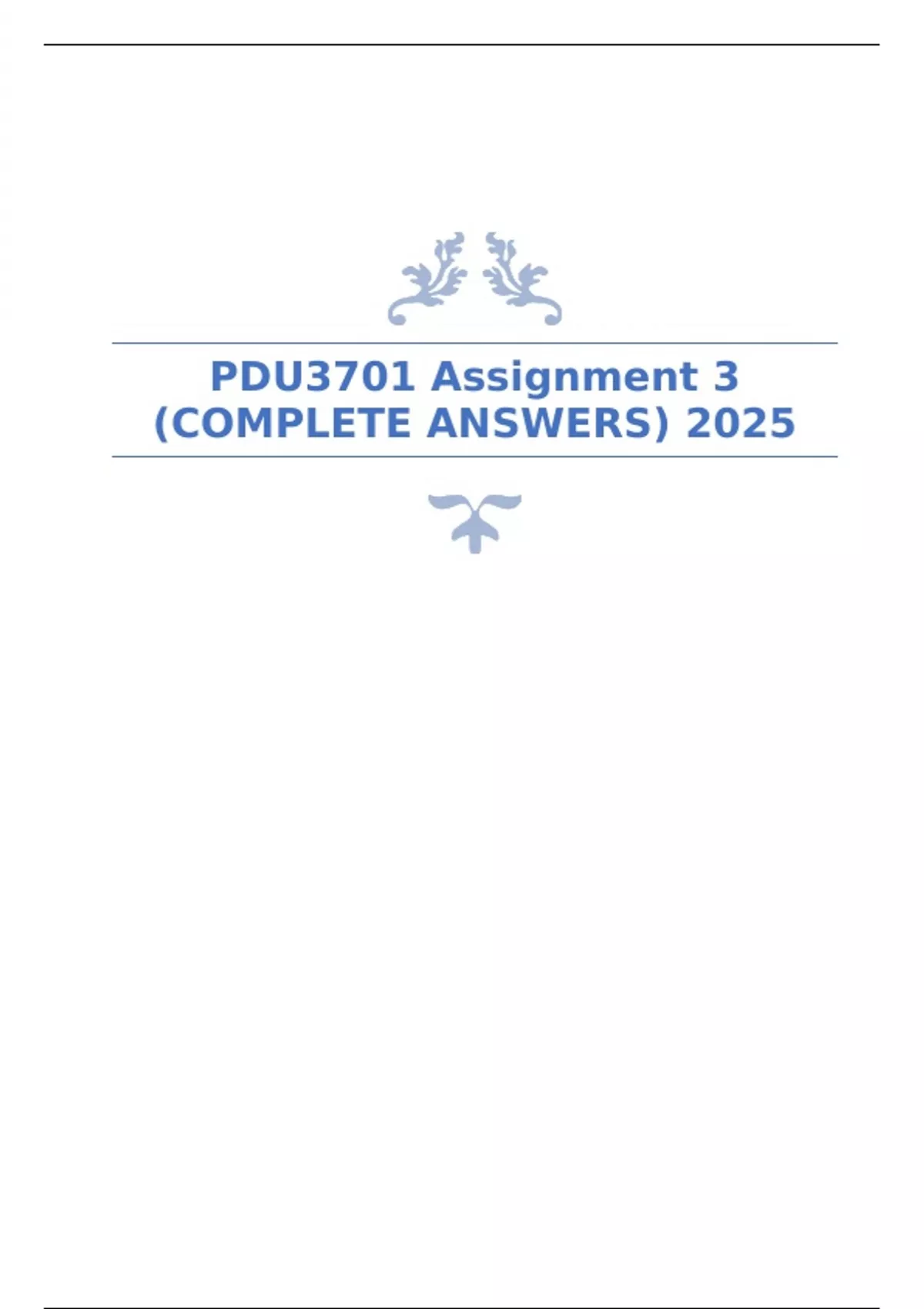 PDU3701 Assignment 3 (COMPLETE ANSWERS) 2025