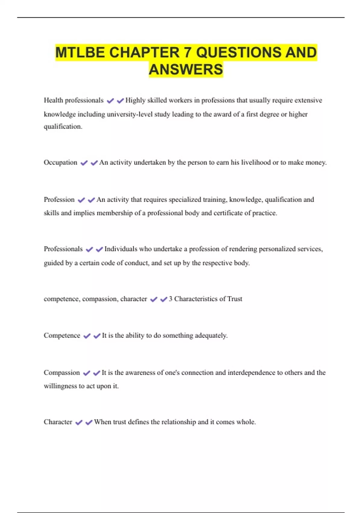 Professionalism CHARACTERISTIC: