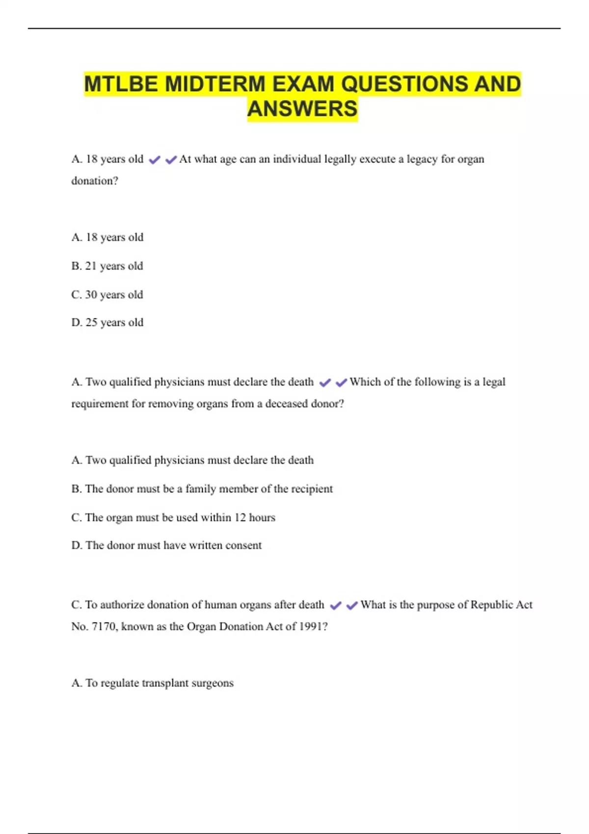 C. To authorize donation of human organs after death What is the purpose of Republic Act