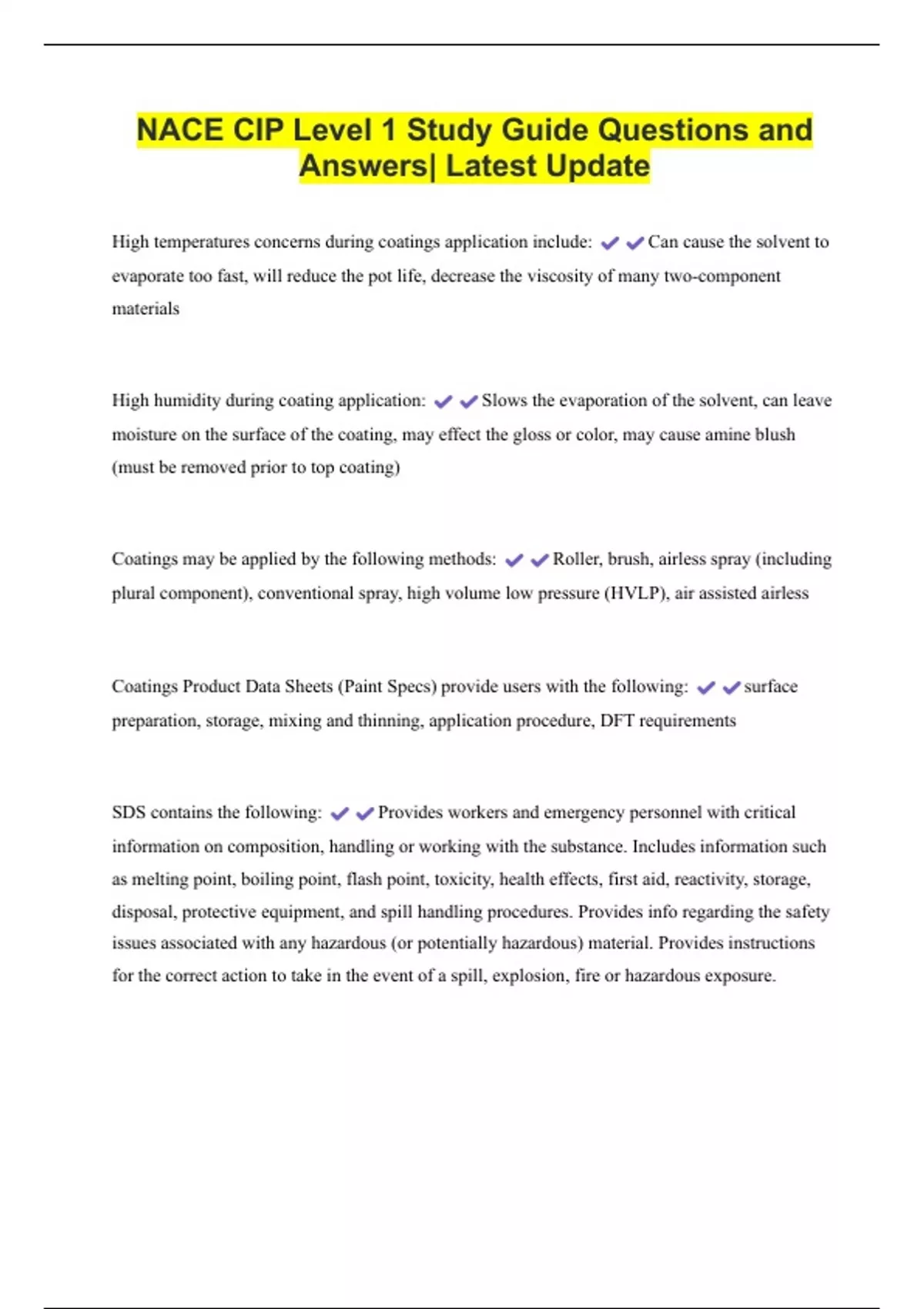 NACE CIP Level 1 Study Guide Questions and Answers| Latest Update