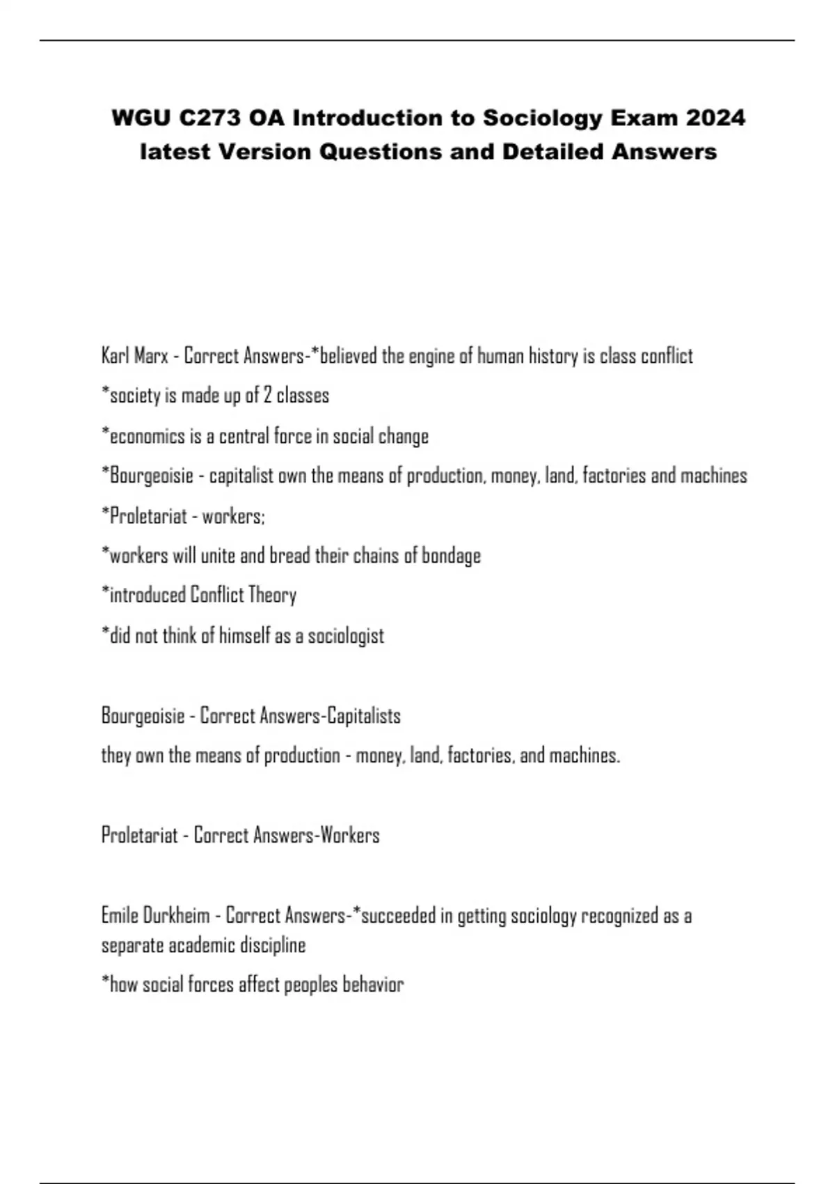 Emile Durkheim - Correct Answers-*succeeded in getting sociology recognized as a