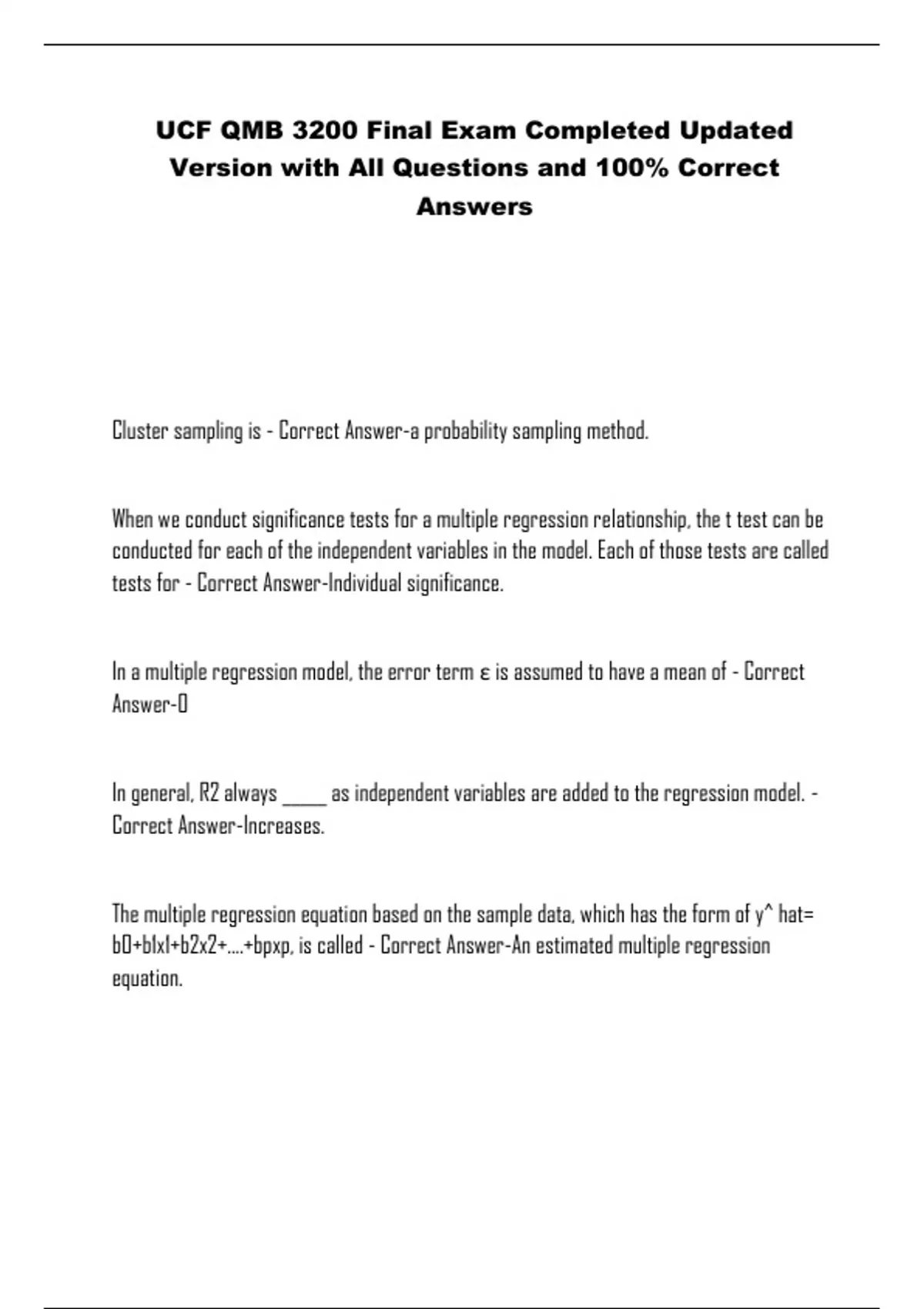 UCF QMB 3200 Final Exam Completed Updated