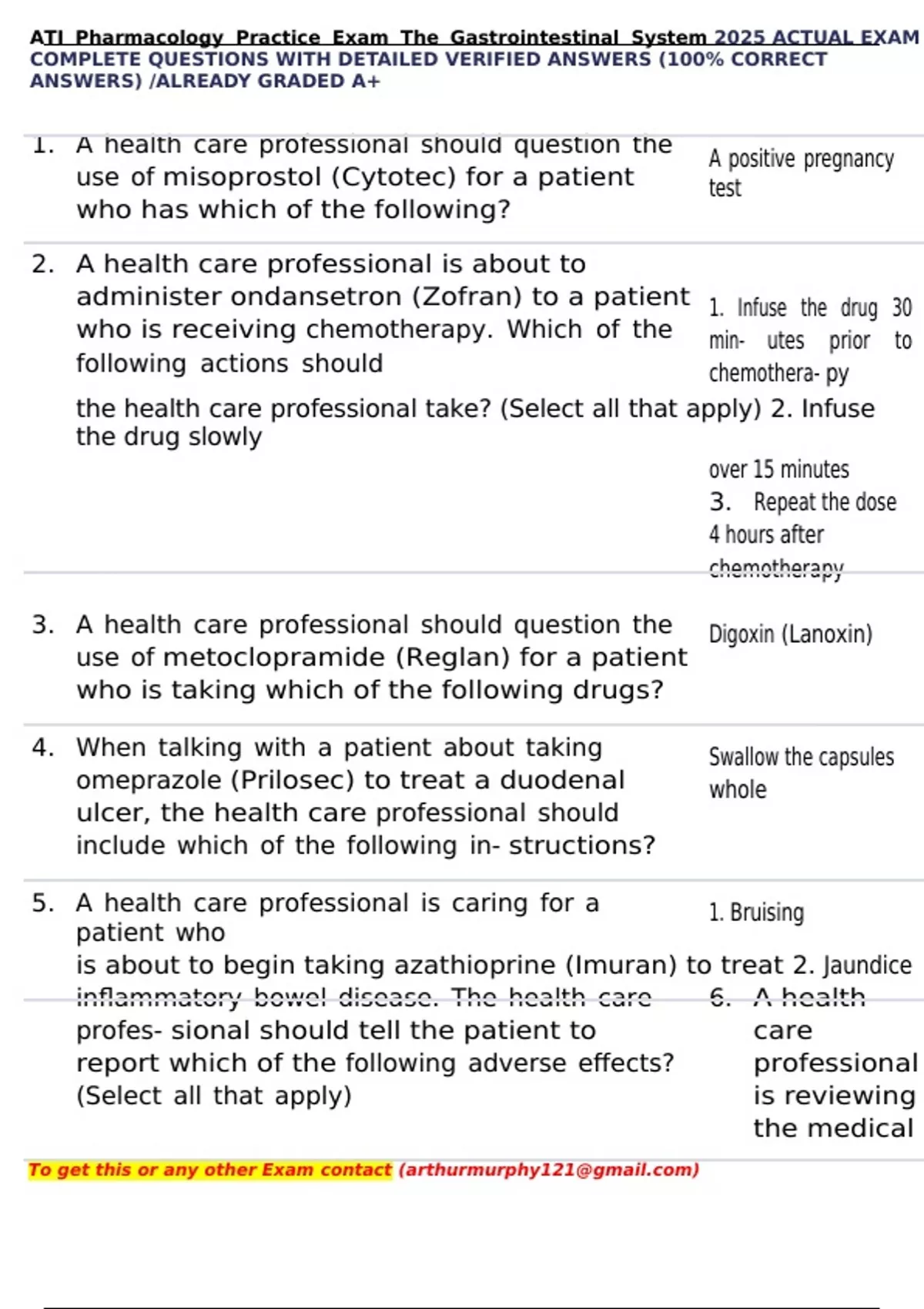 , ATI Pharmacology Practice Exam The Gastrointestinal System 2025 ACTUAL EXAM