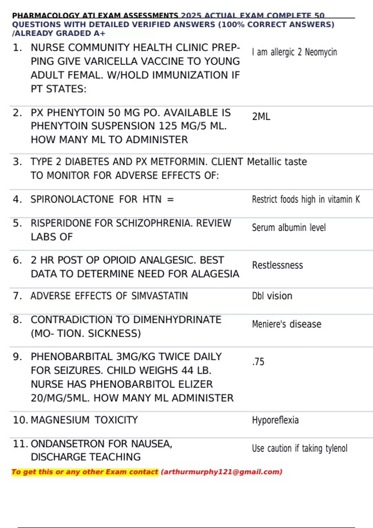 PHARMACOLOGY ATI EXAM ASSESSMENTS 2025 ACTUAL EXAM COMPLETE 50