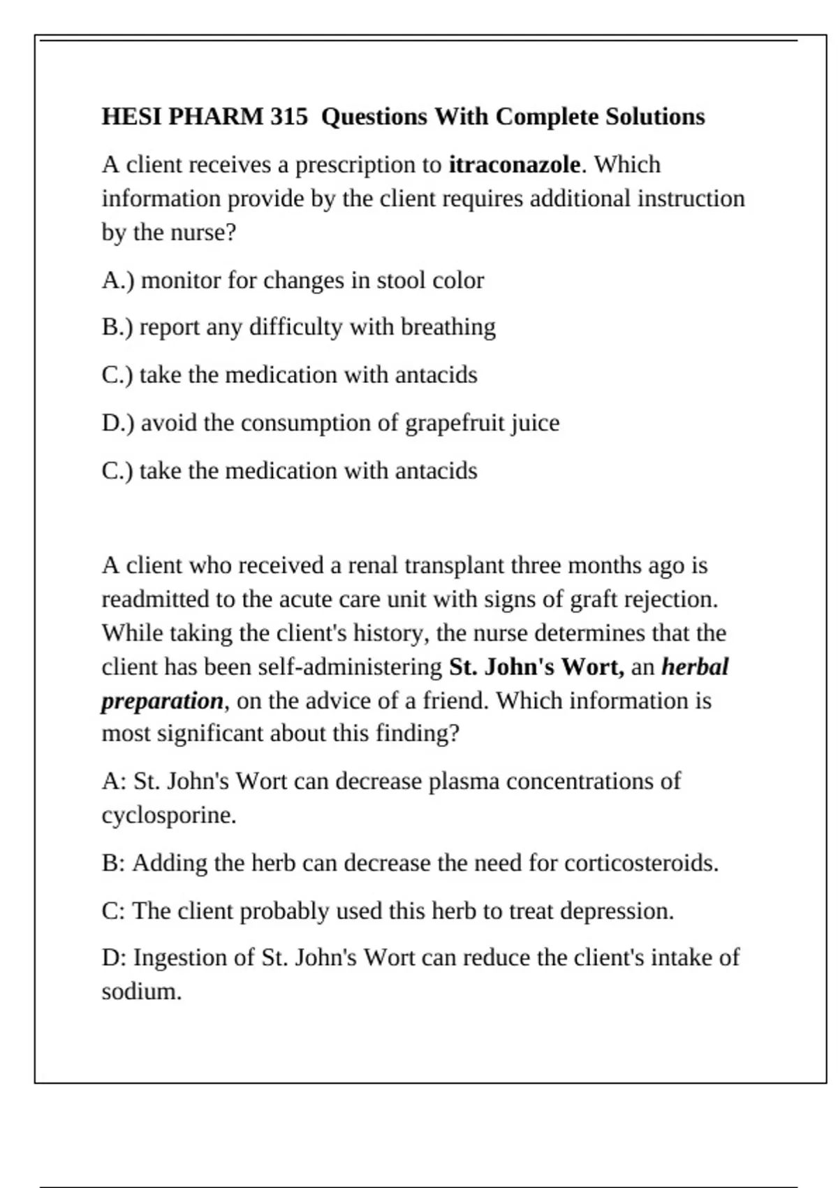 D: Ingestion of St. John's Wort can reduce the client's intake of