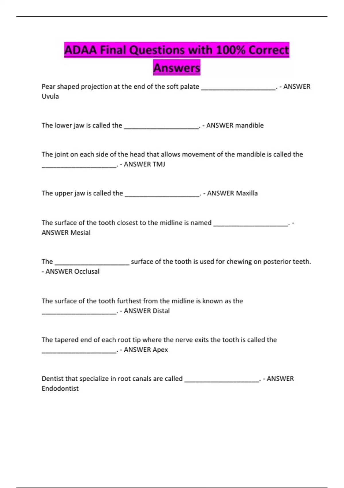 - ANSWER Occlusal