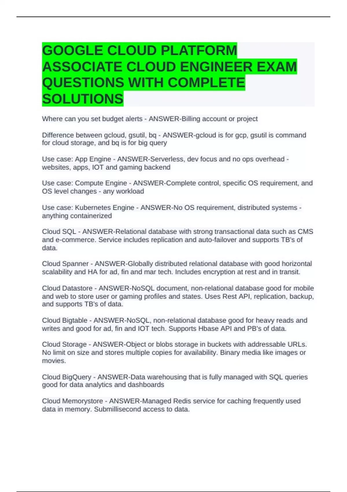 GOOGLE CLOUD PLATFORM ASSOCIATE CLOUD ENGINEER EXAM QUESTIONS WITH COMPLETE SOLUTIONS