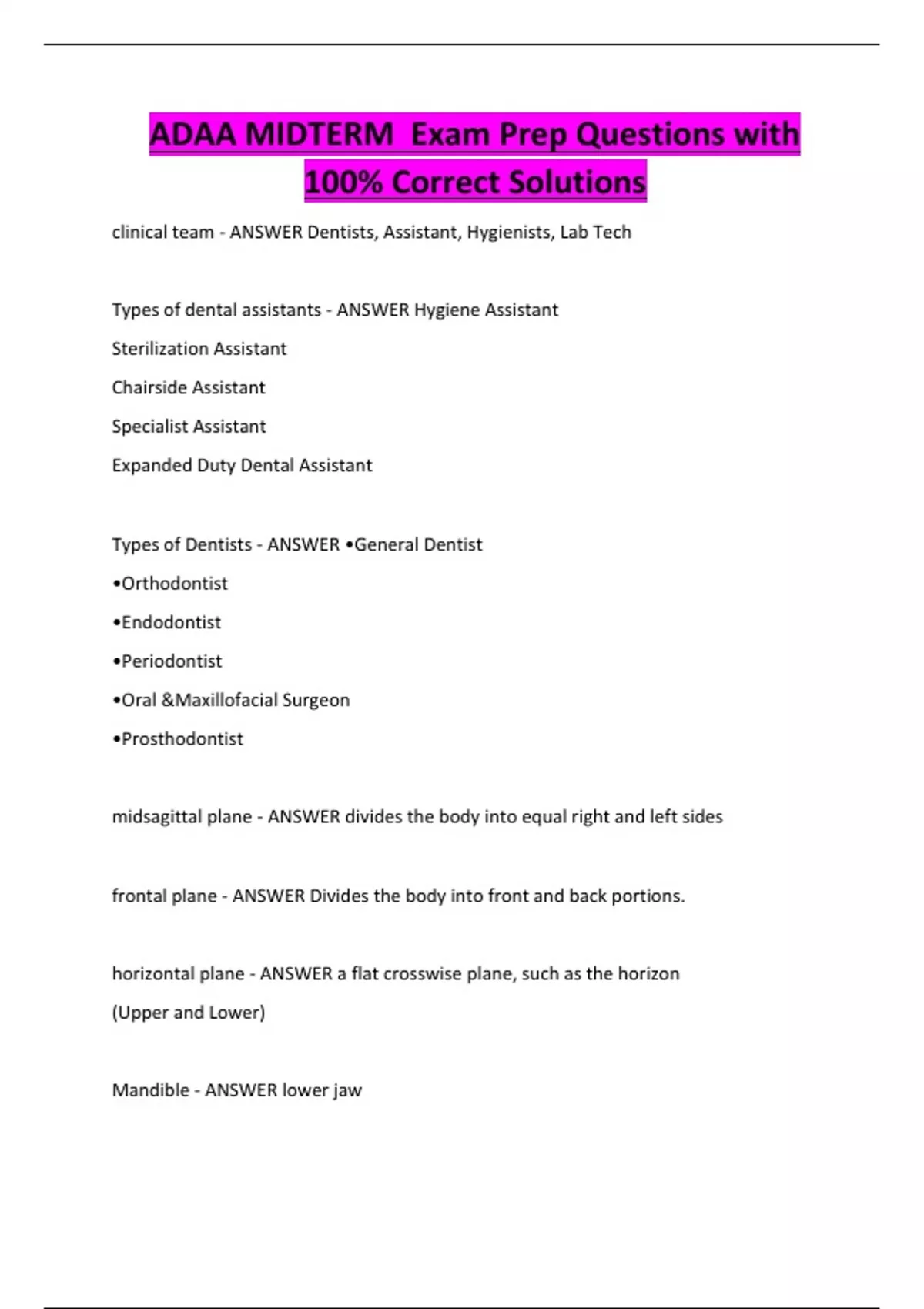 ADAA MIDTERM Exam Prep Questions with