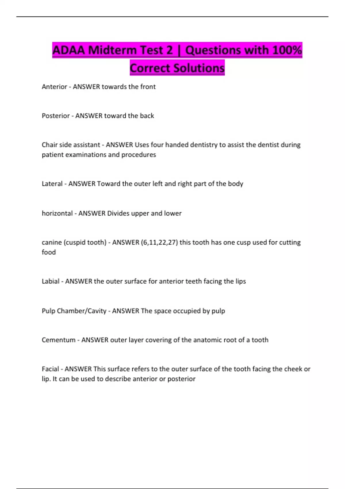 Pulp Chamber/Cavity - ANSWER The space occupied by pulp