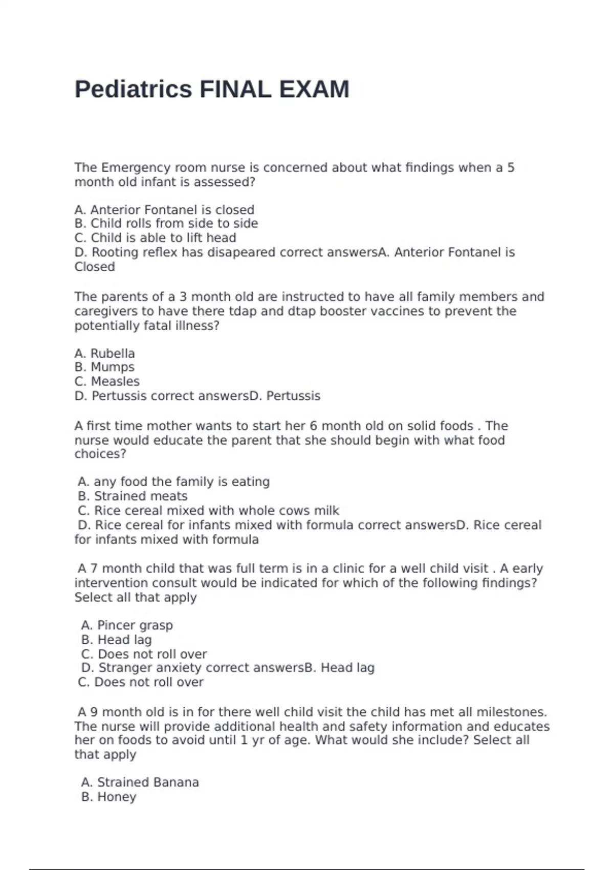 D. Strained Carrots correct answersB. Honey