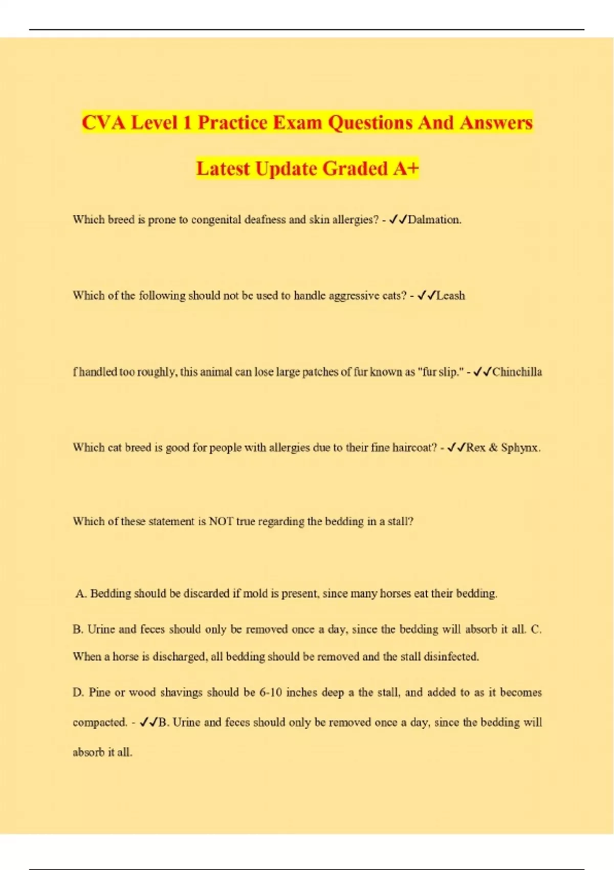 CVA Level 1 Practice Exam Questions And Answers Latest Update Graded A+
