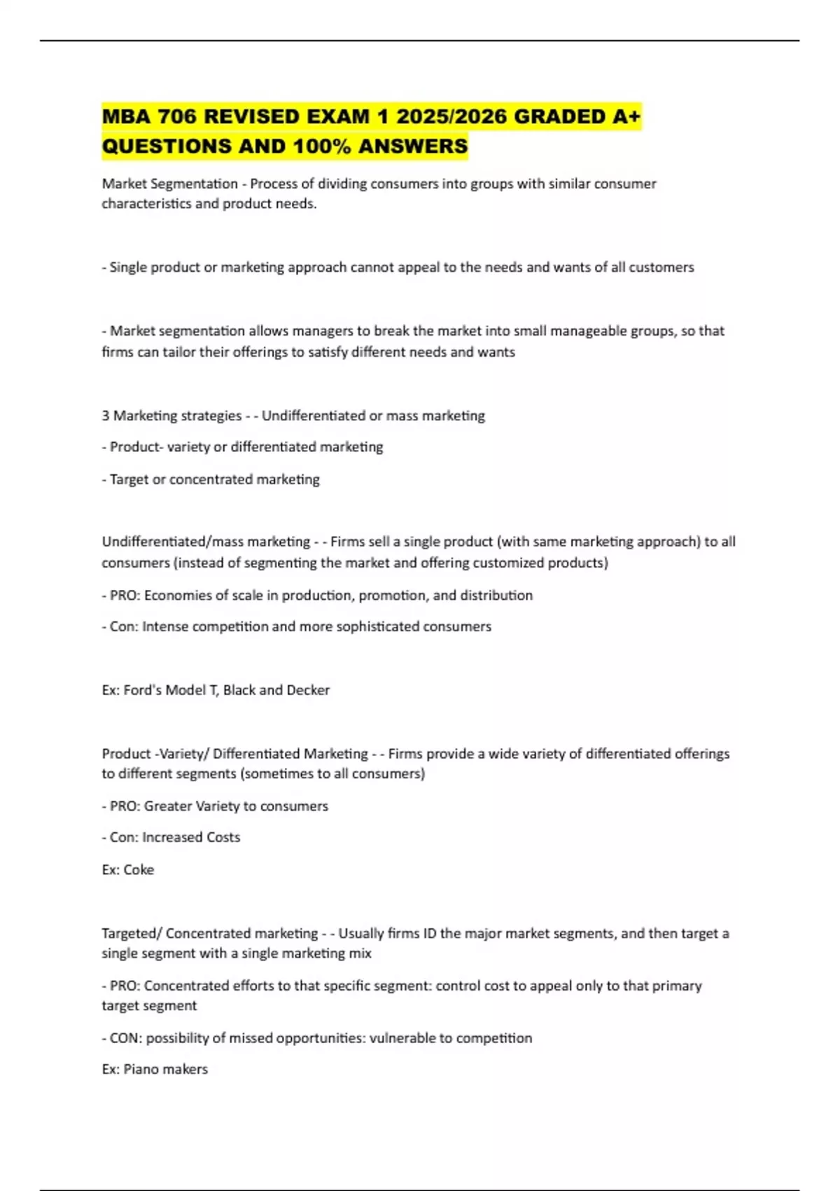 Undifferentiated/mass marketing - - Firms sell a single product (with same marketing approach) to all