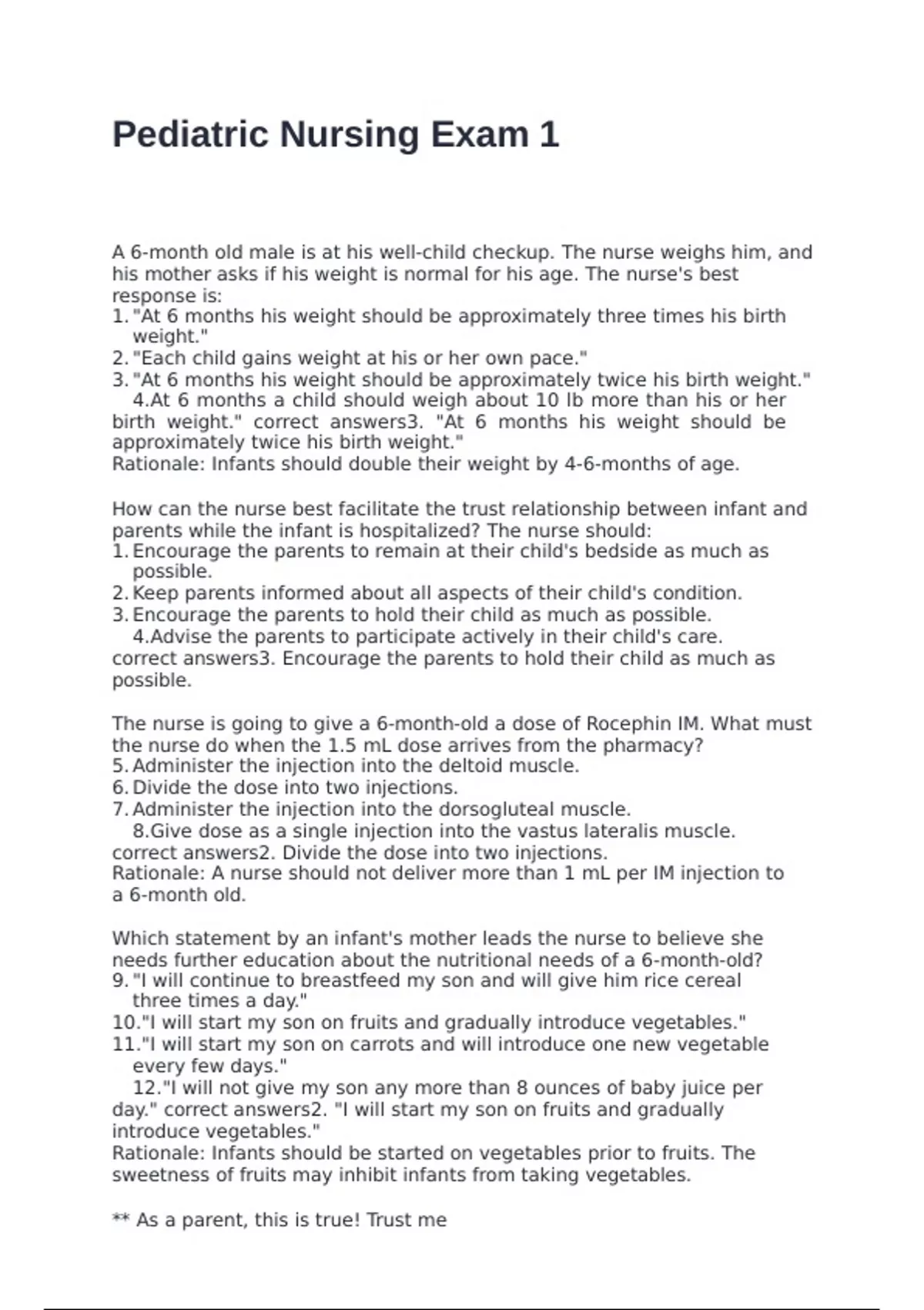 day." correct answers2. "I will start my son on fruits and gradually