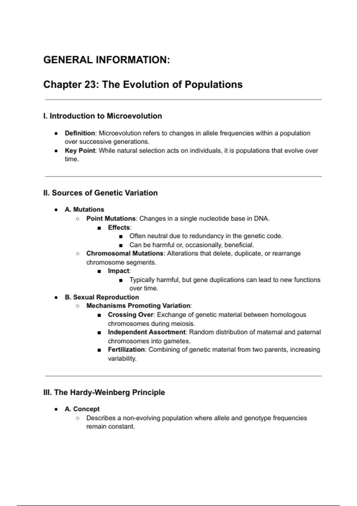 I. Introduction to Microevolution