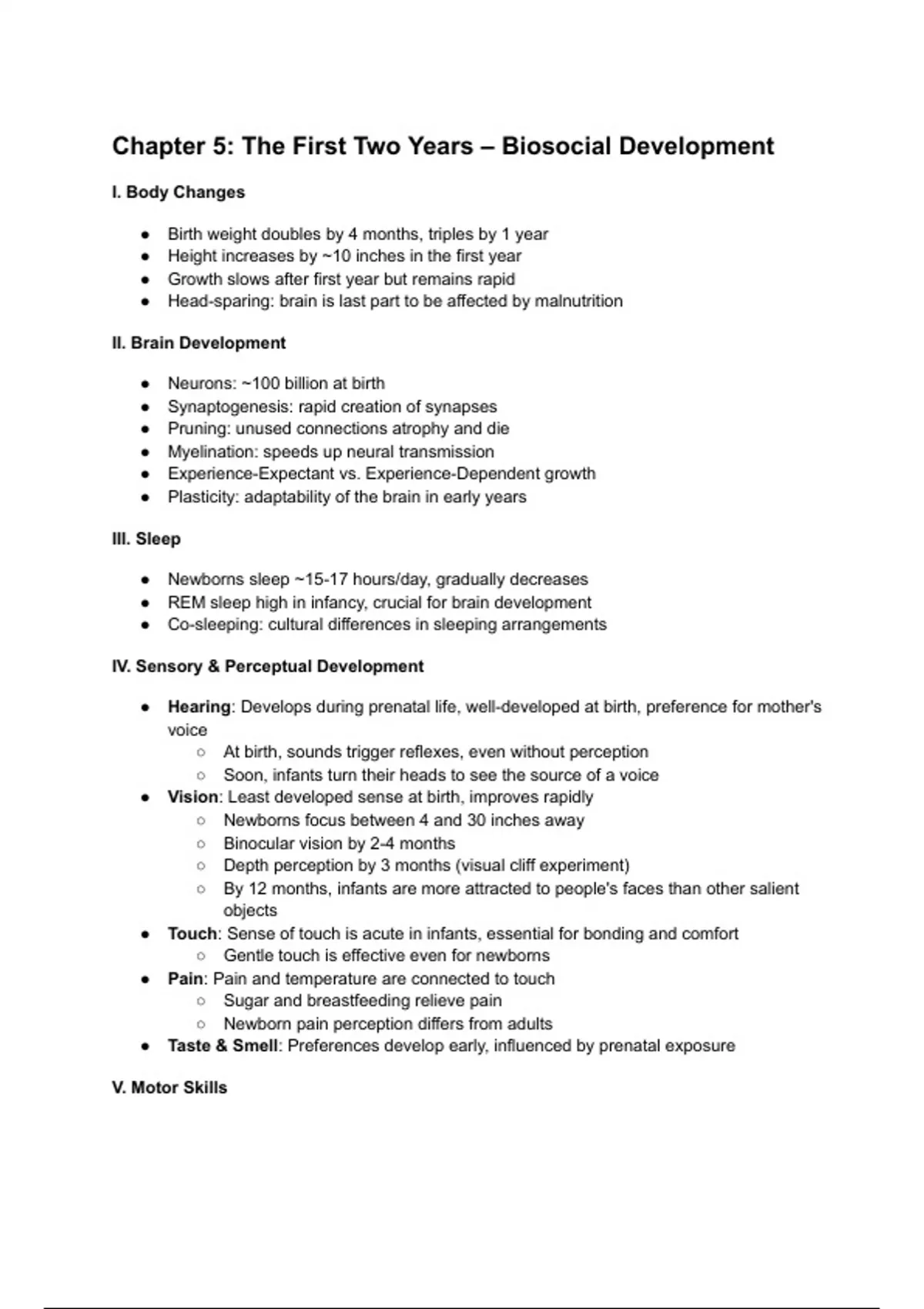 V. Motor Skills