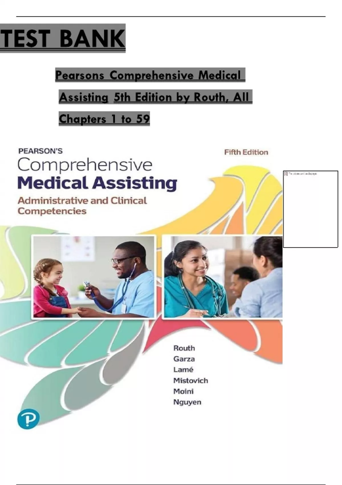 Test Bank For Pearson's Comprehensive Medical Assisting, 5th Edition by Kristiana Sue M. Routh, Diana Garza, Jennifer Lamé, Joseph J. Mistovich, Jahangir Moini, Jamie Nguyen Chapter 1-57