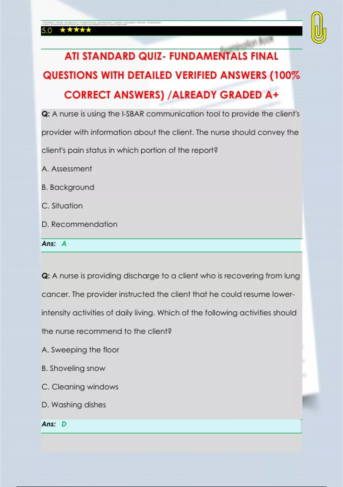 ATI STANDARD QUIZ- FUNDAMENTALS FINAL