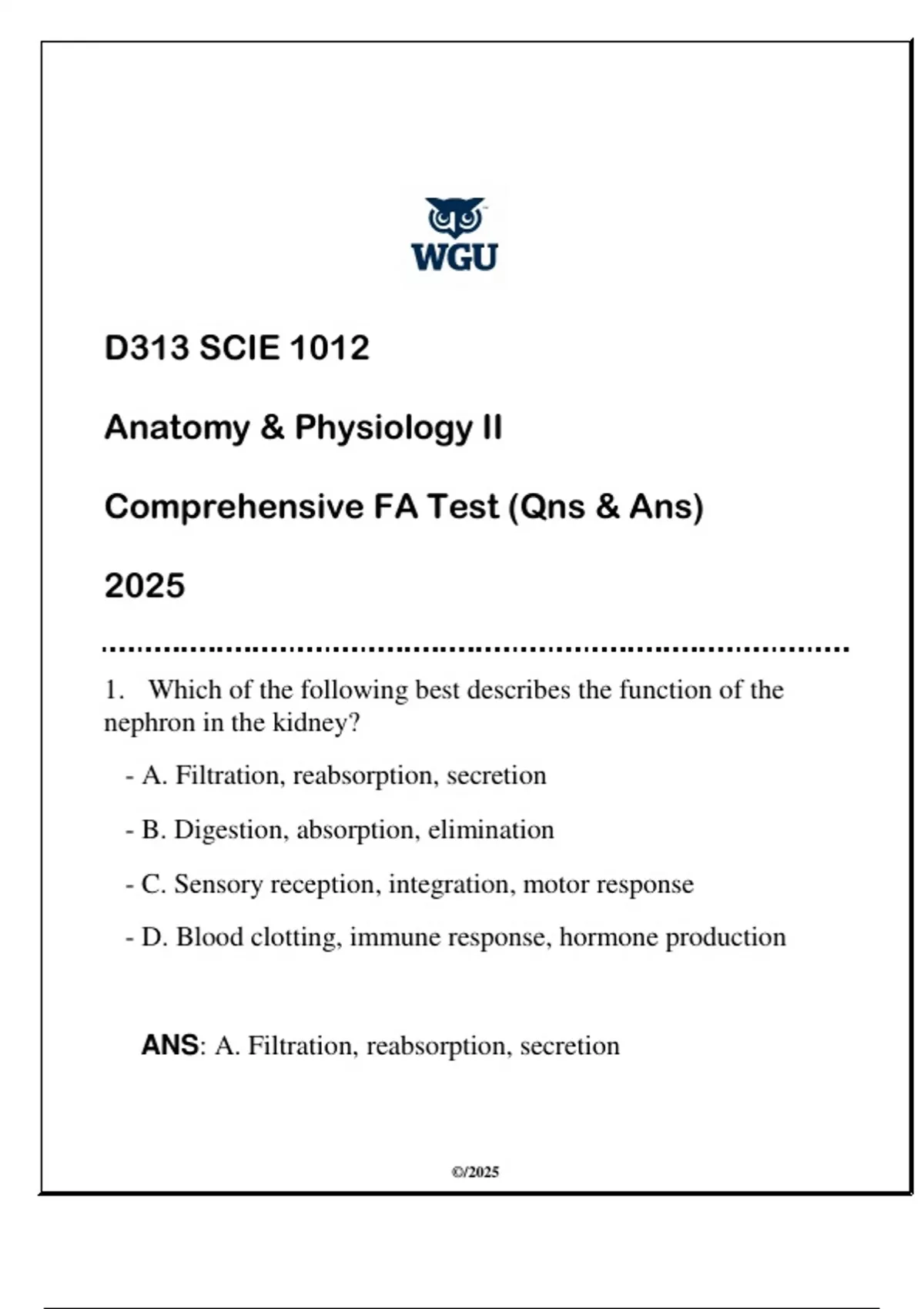 SCIE 1012 (WGU D313) Anatomy & Physiology II FA Review (Qns & Ans) 2025.SCIE 1012 (WGU D313) Anatomy & Physiology II FA Review (Qns & Ans) 2025.SCIE 1012 (WGU D313) Anatomy & Physiology II FA Review (Qns & Ans) 2025.