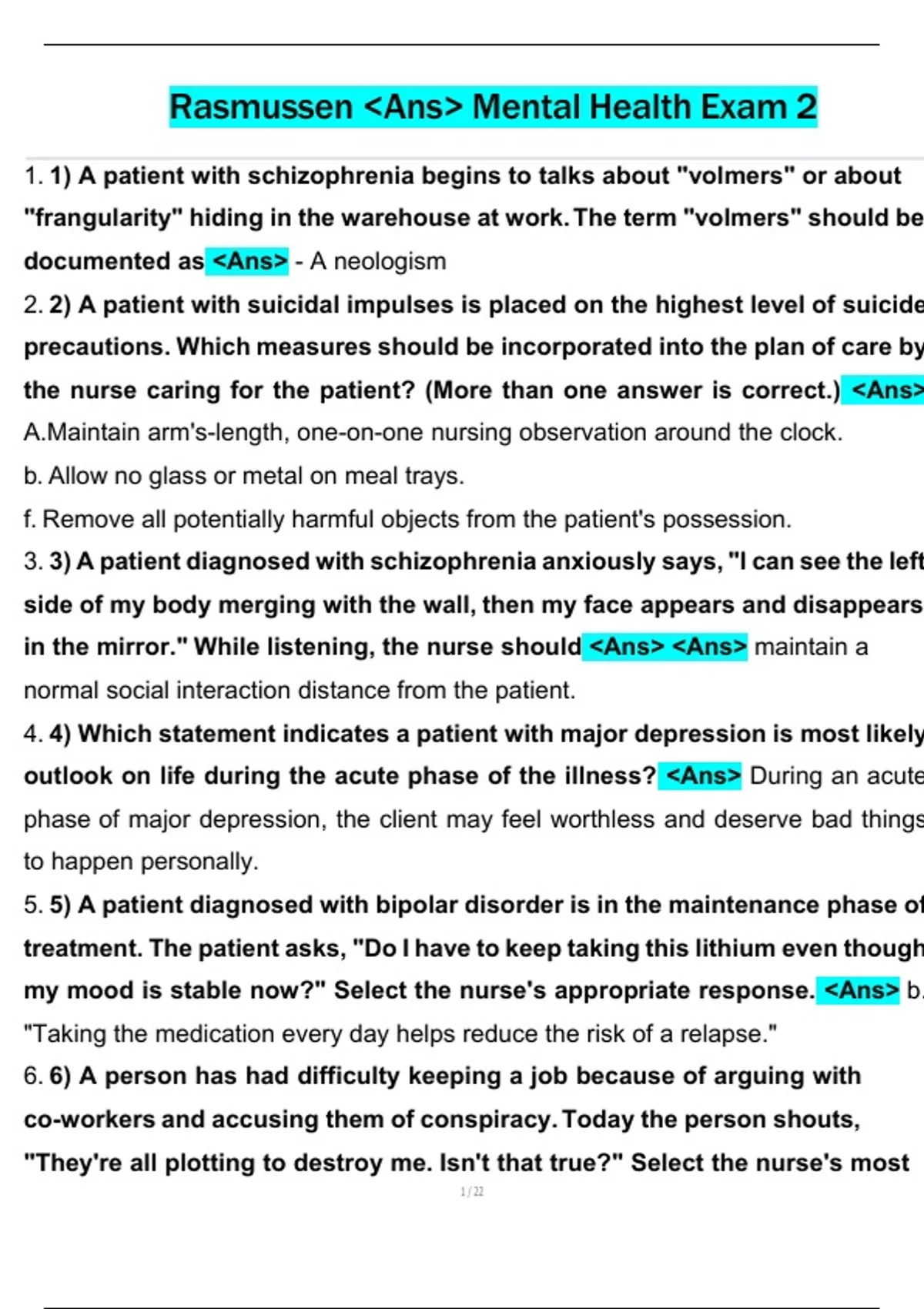 my mood is stable now?" Select the nurse's appropriate response. <Ans> b.