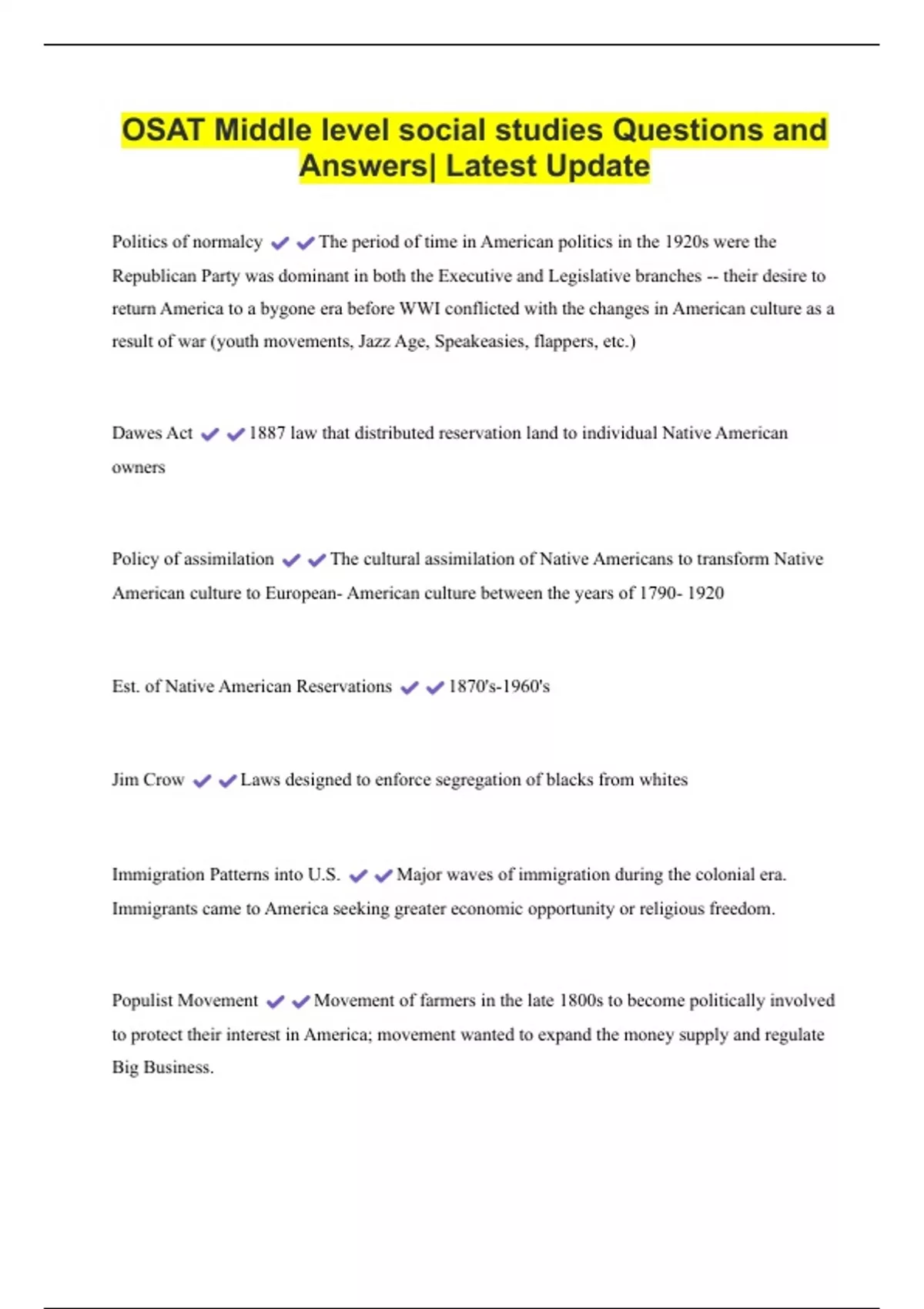 OSAT Middle level social studies Questions and Answers| Latest Update