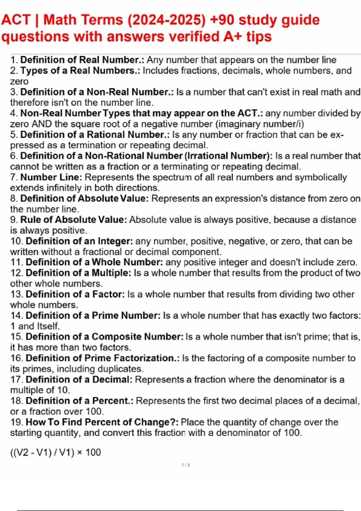 ACT Math Terms () +90 study guide questions with answers verified A+ tipsACT Math Terms () +90 study guide questions with answers verified A+ tipsACT Math Terms () +90 study guide questions with answers verified A+ tipsACT Math Terms () +90 study guide questions with answers verified A+ tips
