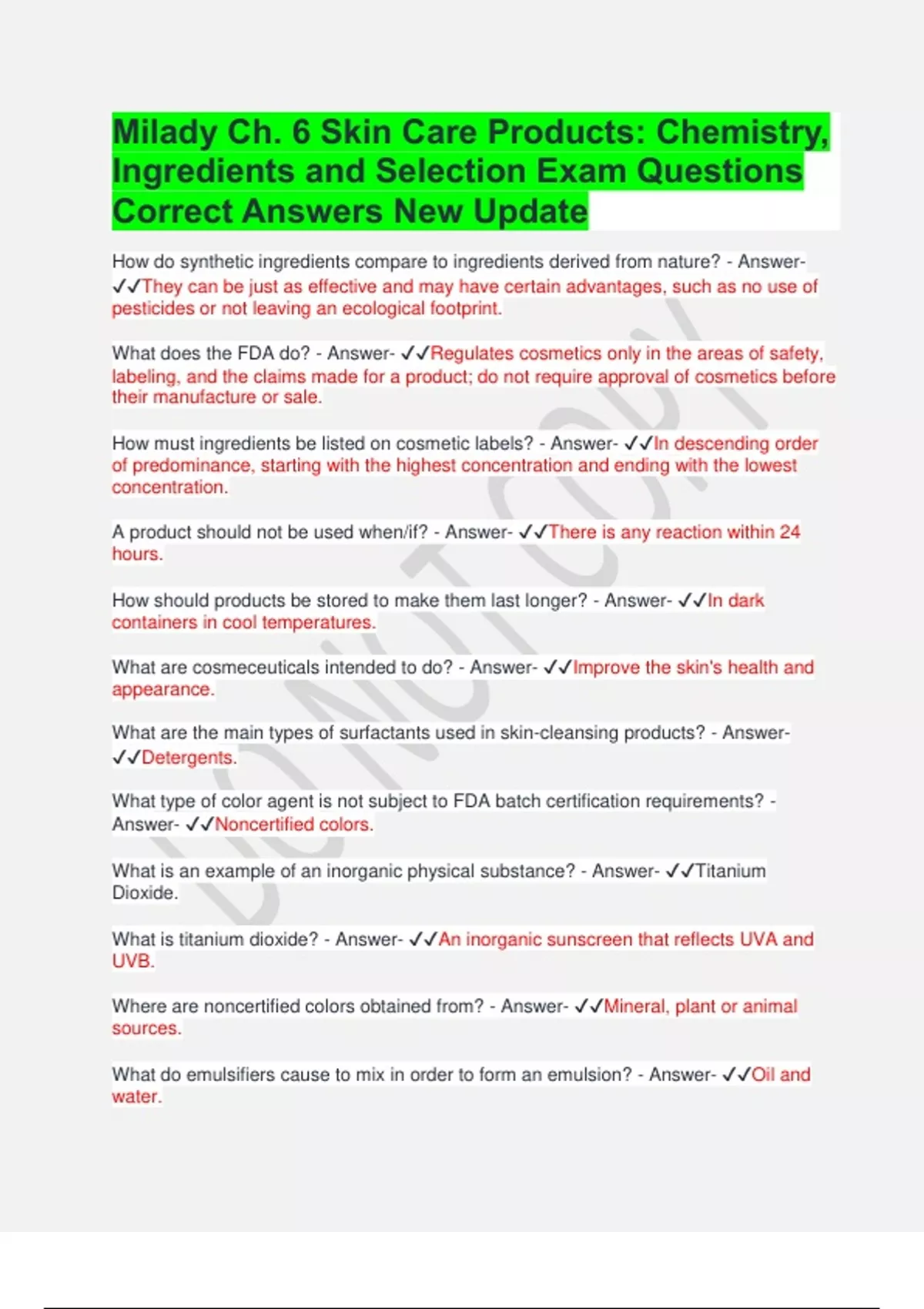 How must ingredients be listed on cosmetic labels? - Answer- ✔✔In descending order