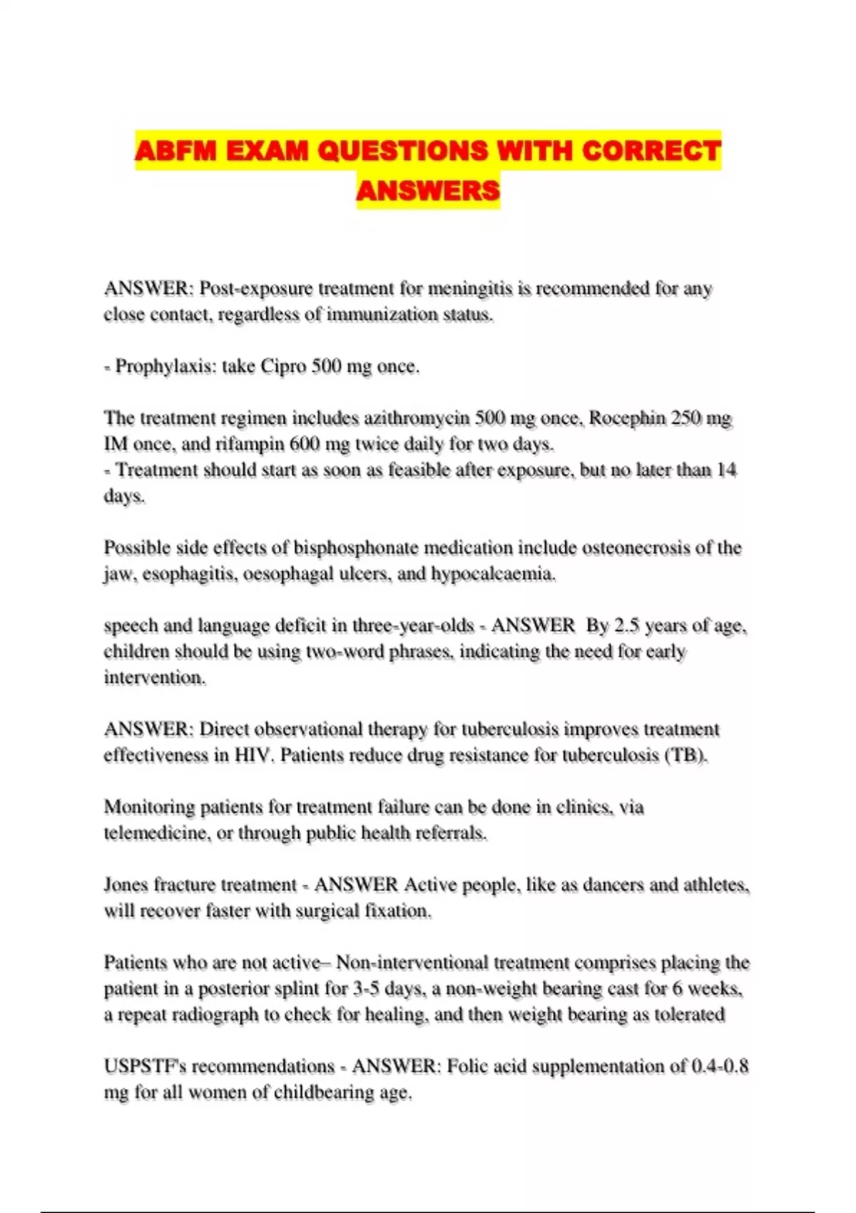 ABFM EXAM QUESTIONS WITH CORRECT