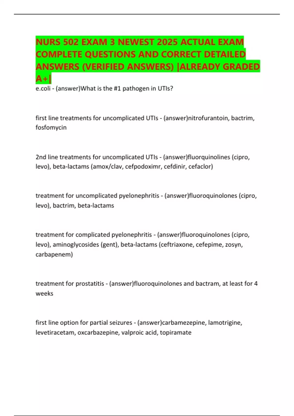 NURS 502 EXAM 3 NEWEST 2025 ACTUAL EXAM COMPLETE QUESTIONS AND CORRECT DETAILED ANSWERS (VERIFIED ANSWERS) |ALREADY GRADED A+|