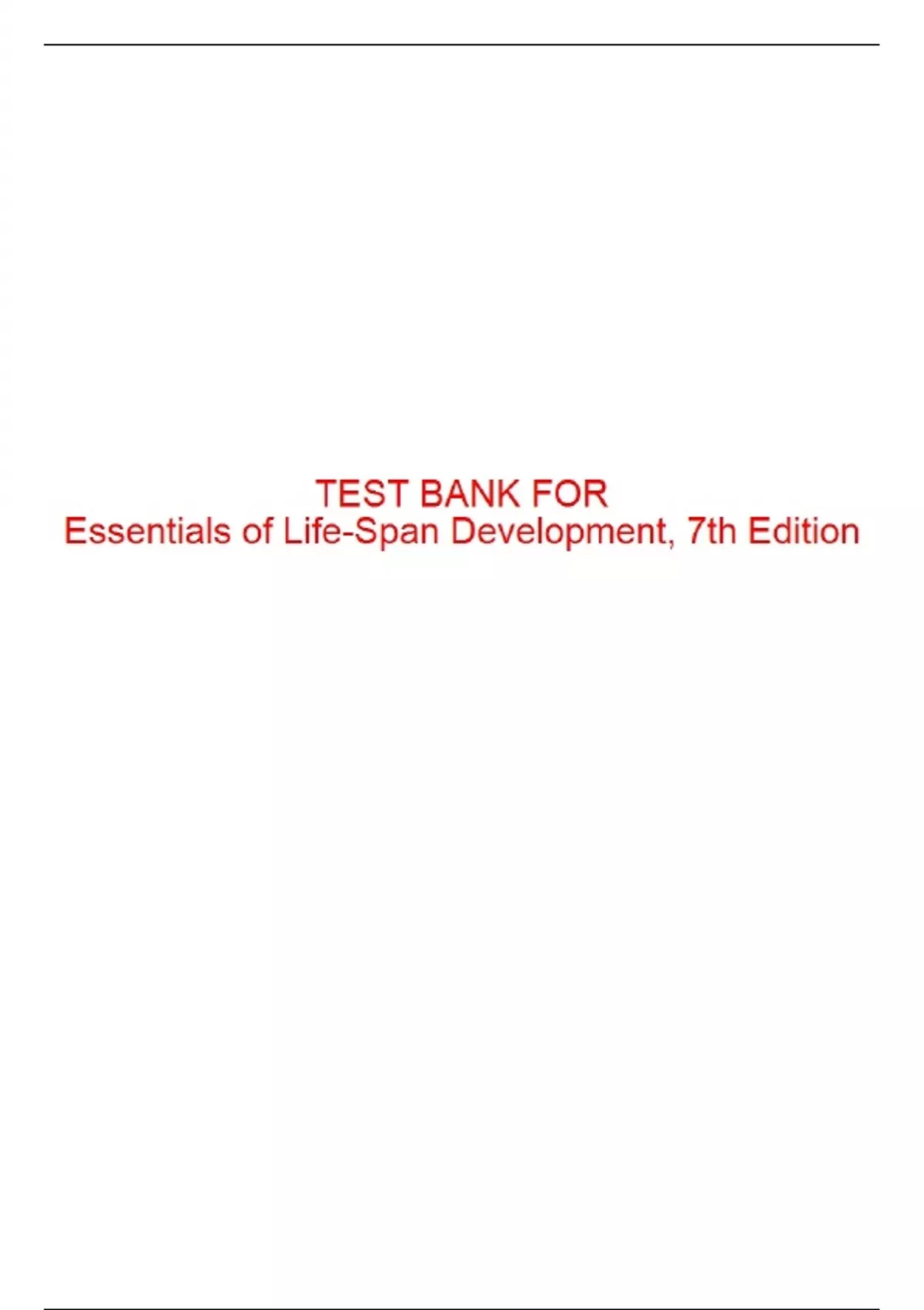 , Test Bank for Essentials of Life-Span Development - 7 - Santrock - Chapter 01