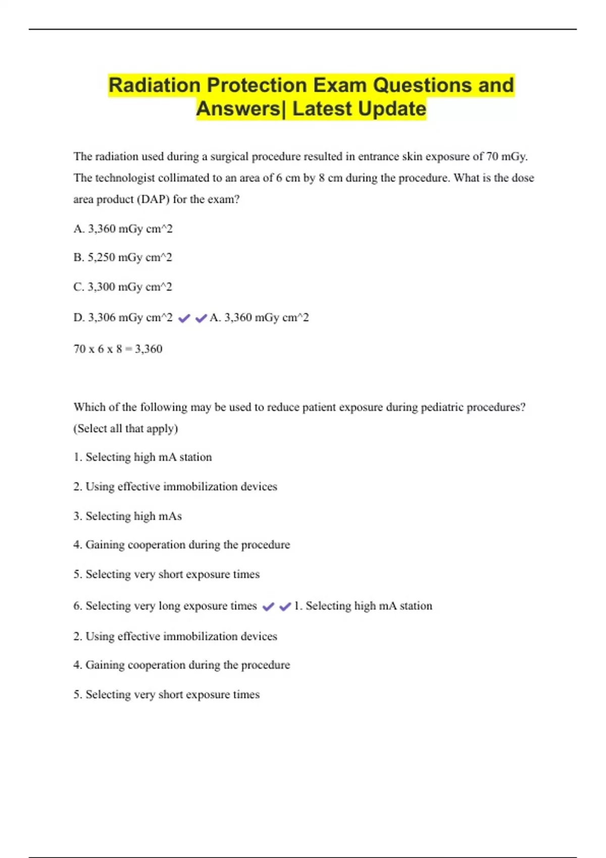 The radiation used during a surgical procedure resulted in entrance skin exposure of 70 mGy.