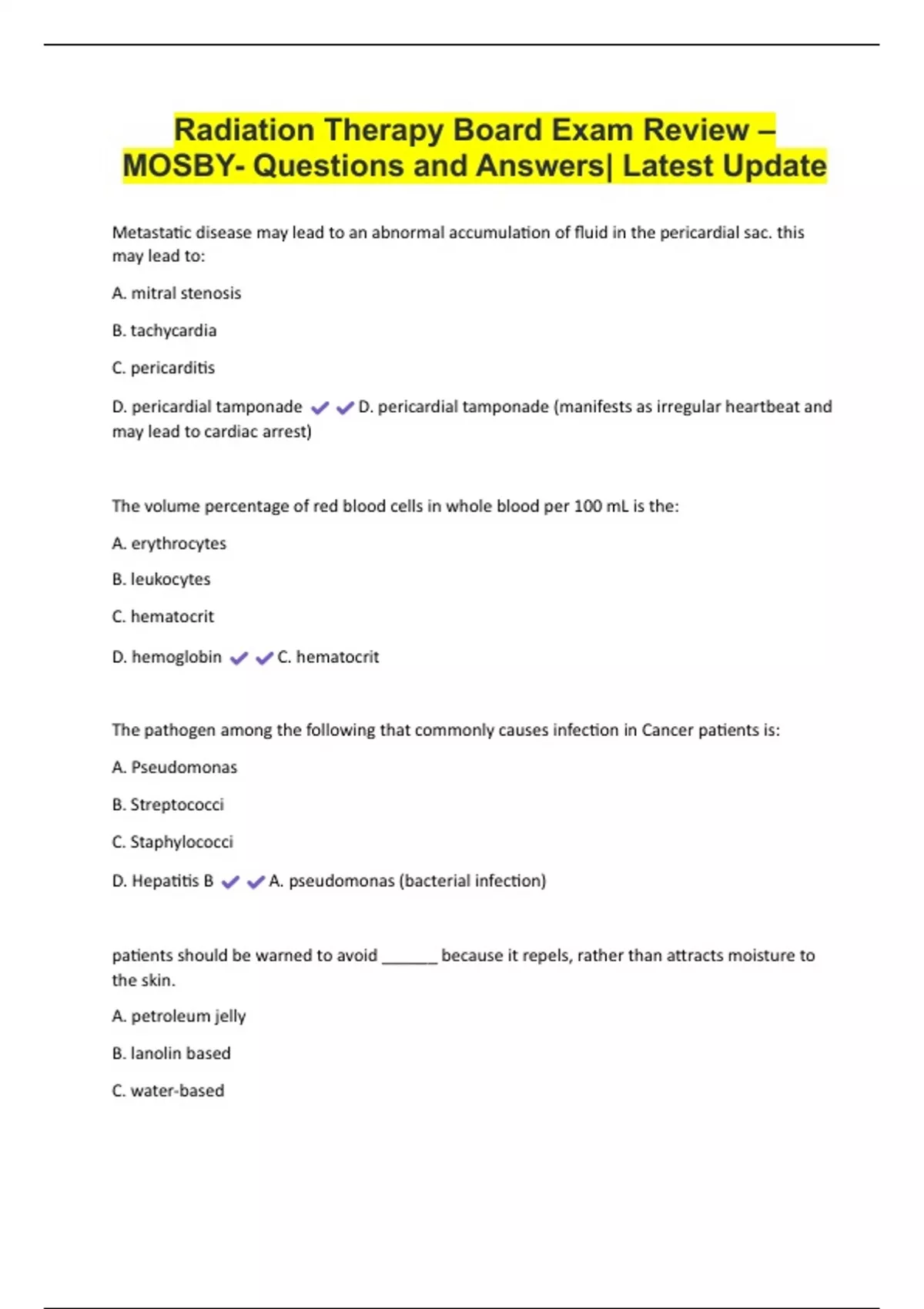 Radiation Therapy Board Exam Review – MOSBY- Questions and Answers| Latest Update