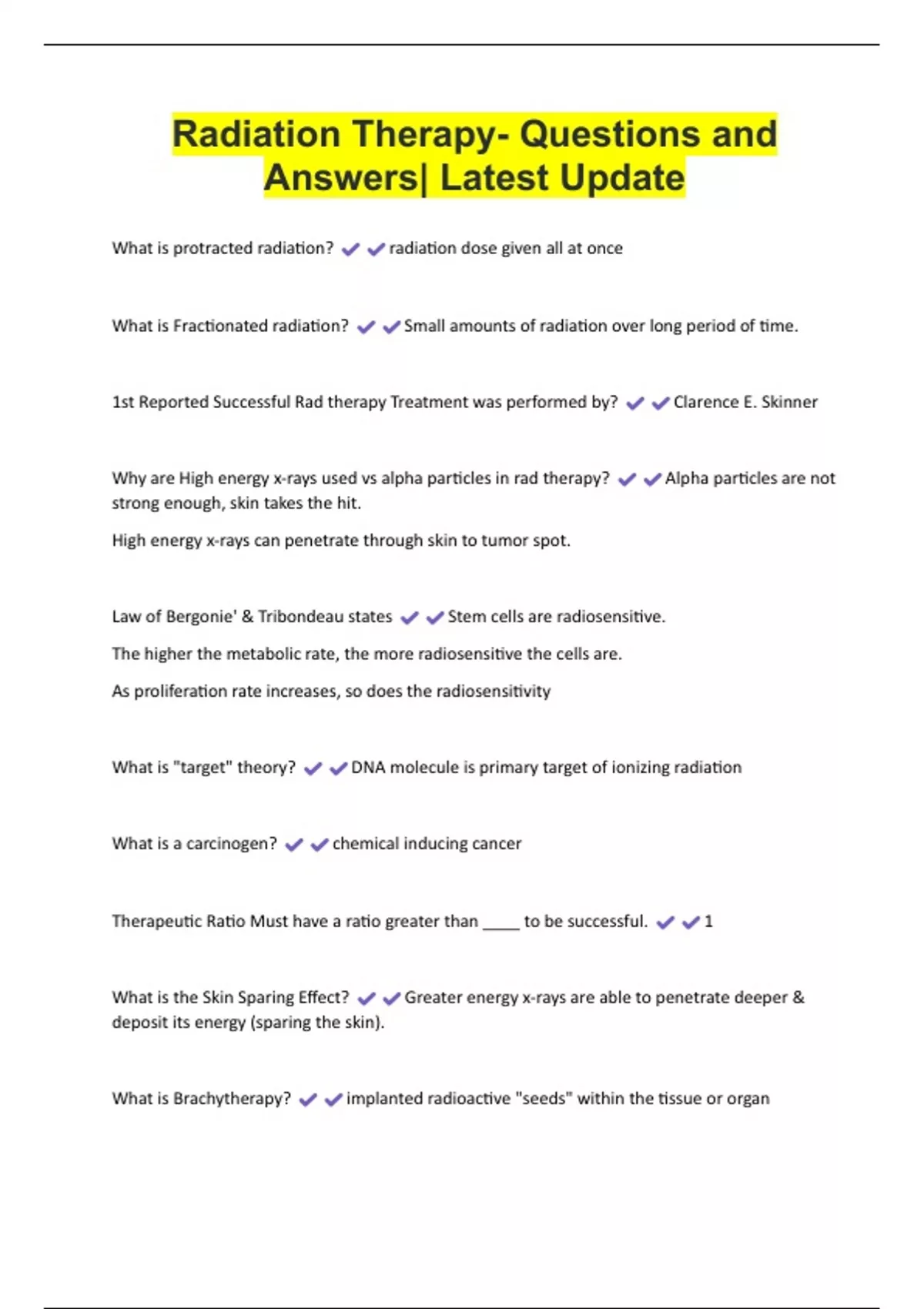 What is Fractionated radiation? Small amounts of radiation over long period of time.
