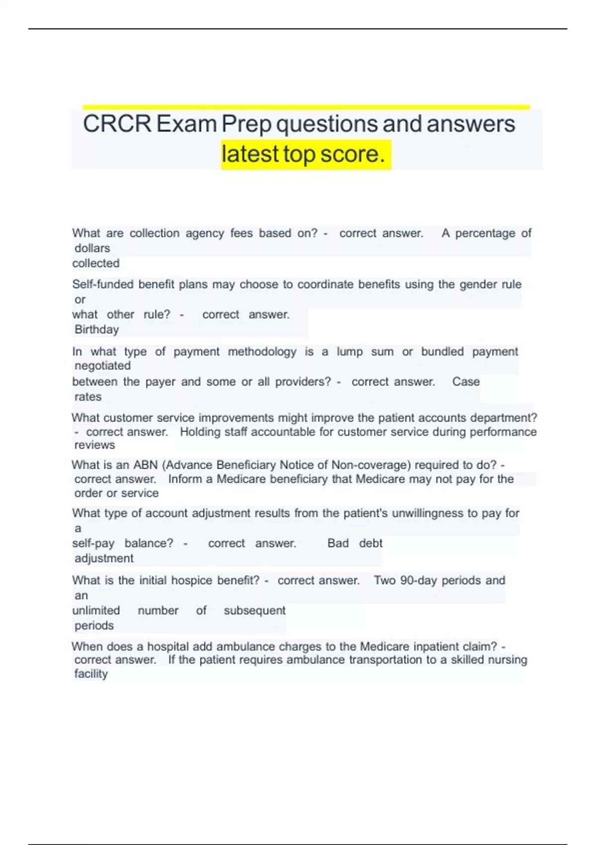 CRCR Exam Prep questions and answers