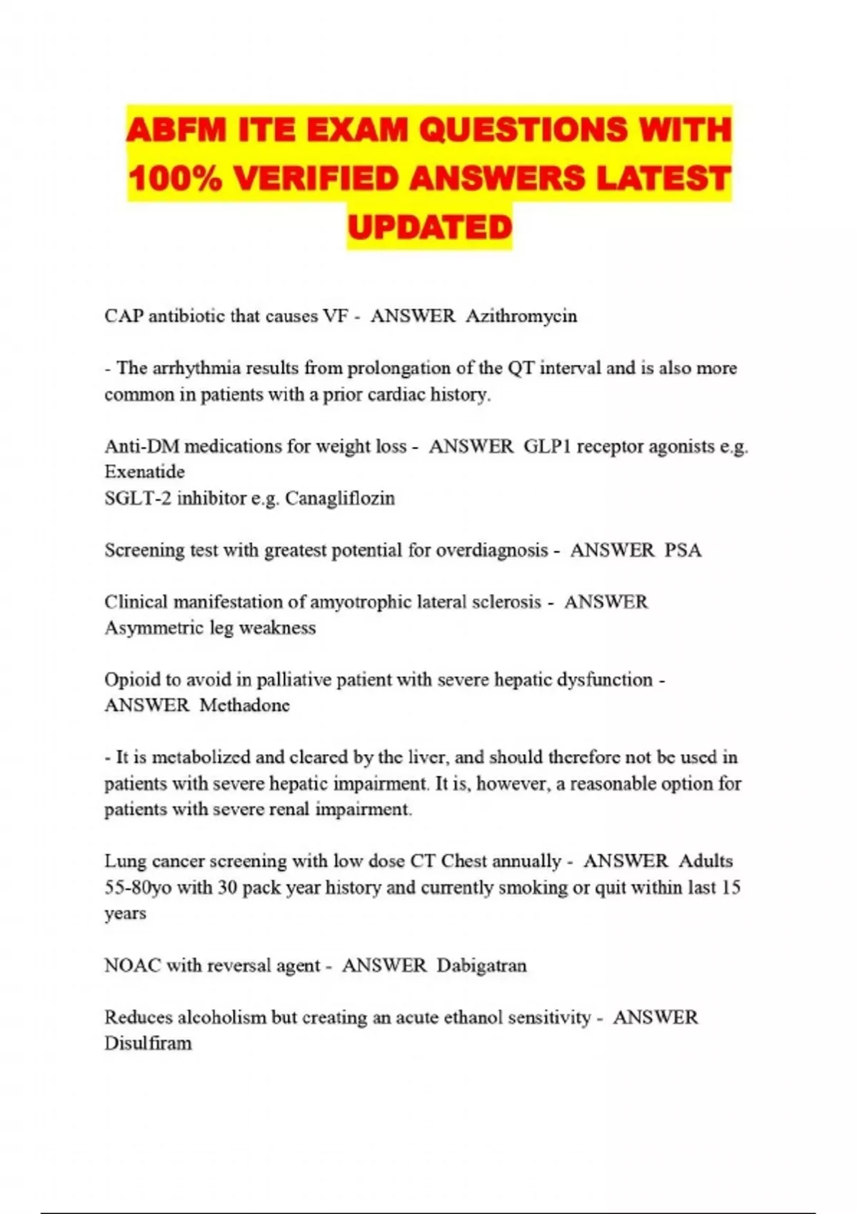 ABFM ITE EXAM QUESTIONS WITH 100% VERIFIED ANSWERS LATEST UPDATED