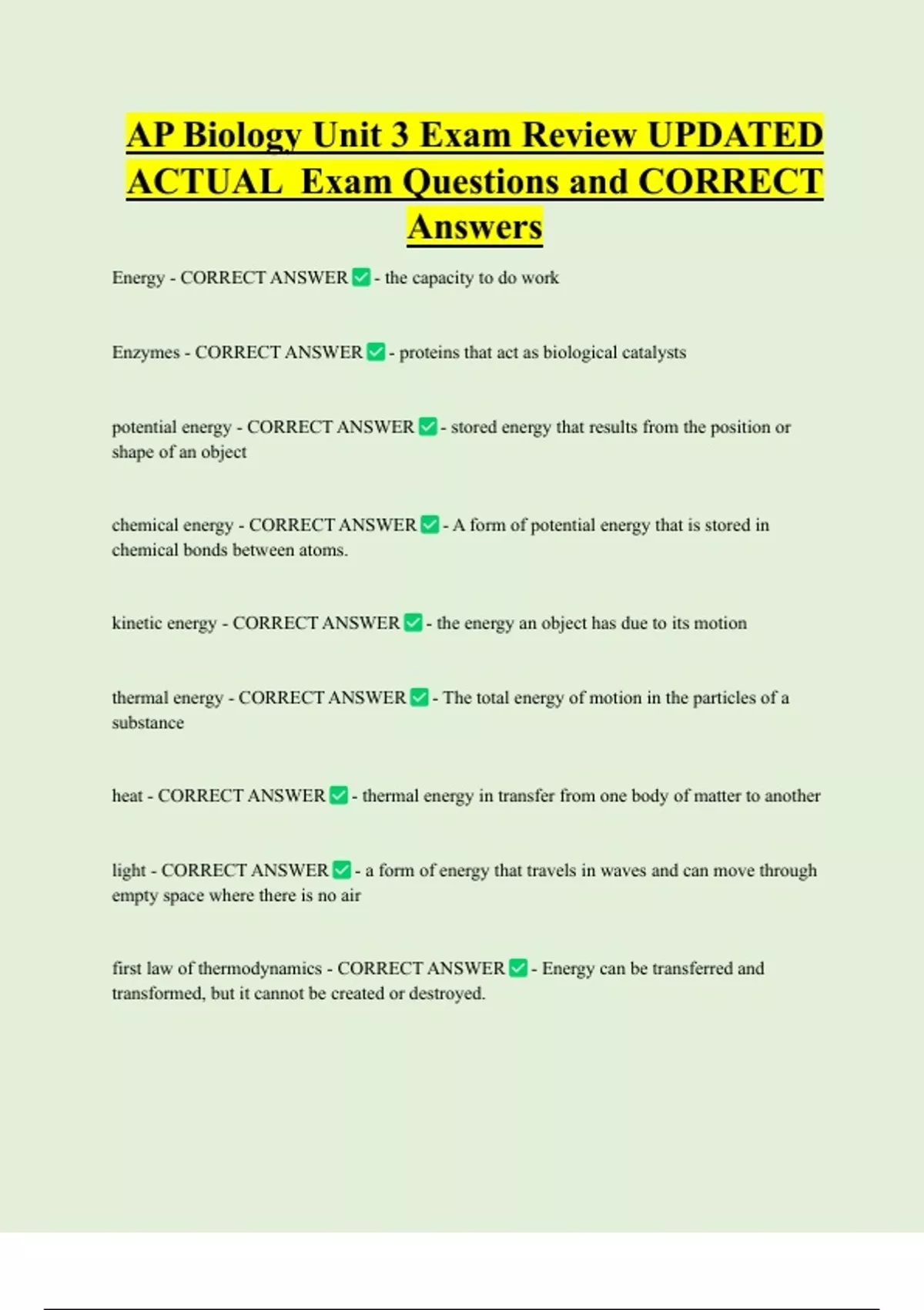 Energy - CORRECT ANSWER - the capacity to do work